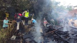 HUKUM Kebakaran Rumah Penginapan di Mancagahar Diduga Akibat Arus Pendek, Polsek Pameungpeuk Turun Tangan