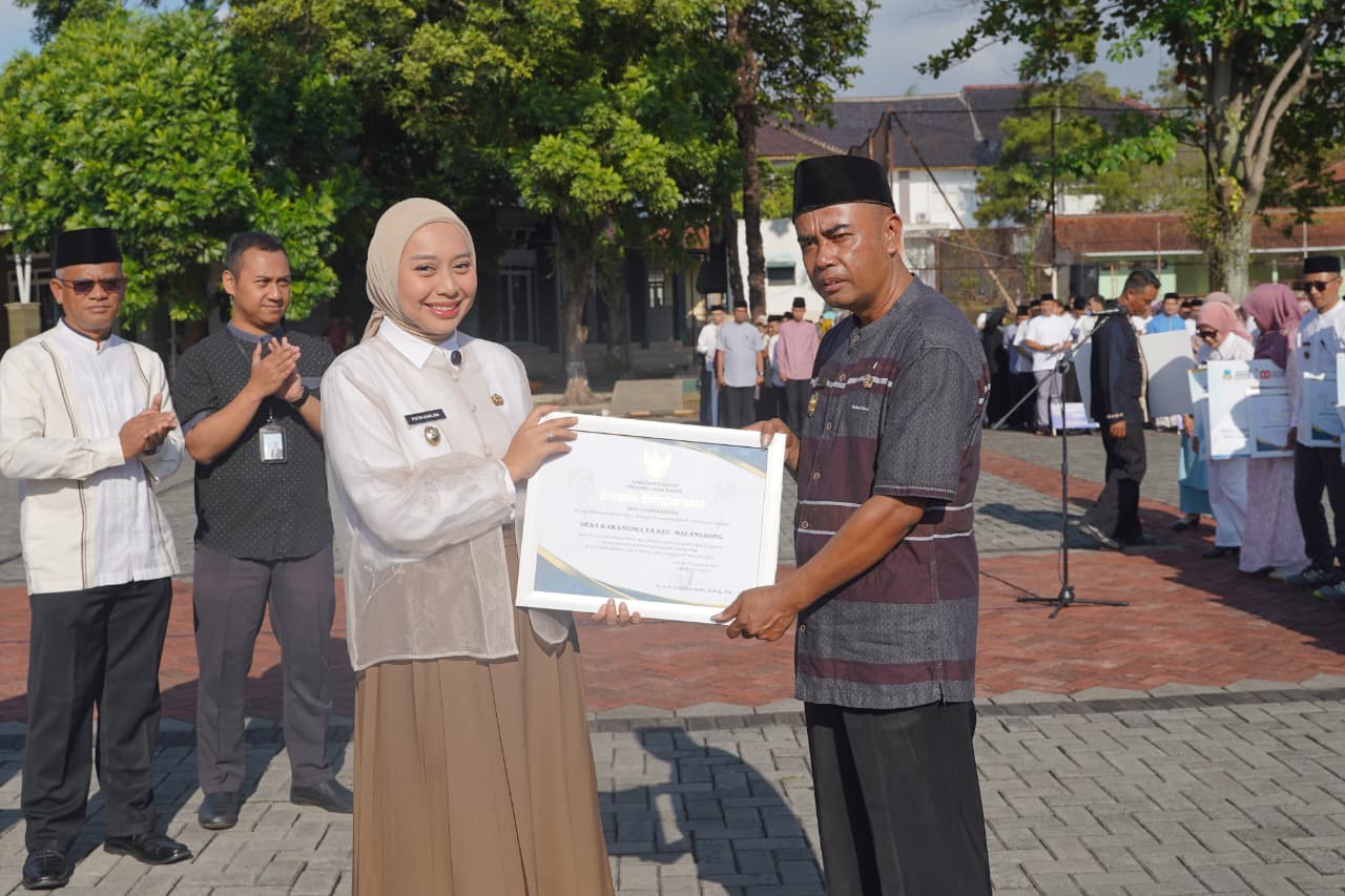 Dalam kesempatan tersebut, Wabup menyerahkan penghargaan kepada 10 desa tercepat yang telah melunasi Pajak Bumi dan Bangunan Perdesaan dan Perkotaan (PBB P2) Tahun 2025 sebelum batas waktu yang ditentukan.