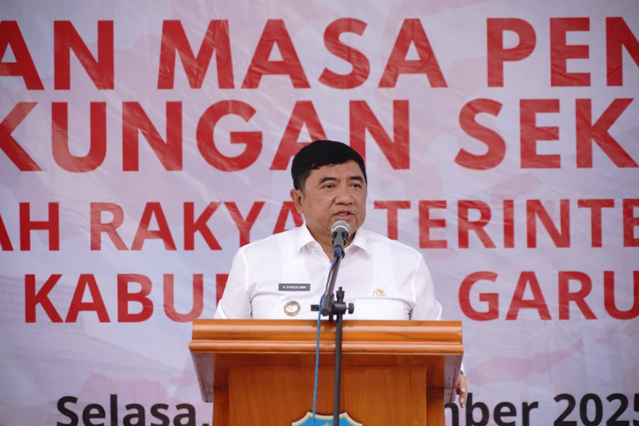 Bupati Garut, Abdusy Syakur Amin, menghadiri Launching dan MPLS Sekolah Rakyat Rintisan Tahun Ajaran 2025/2026 di UPTD BLK Disnakertrans Kabupaten Garut, Kecamatan Samarang, Selasa (30/9/2025).