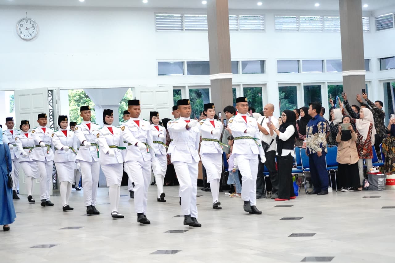 Pelaksanaan pengukuhan Paskibraka tingkat Kabupaten Garut Tahun 2025, yang dilaksanakan di Gedung Pendopo Garut, Jum’at (15/8/2025).