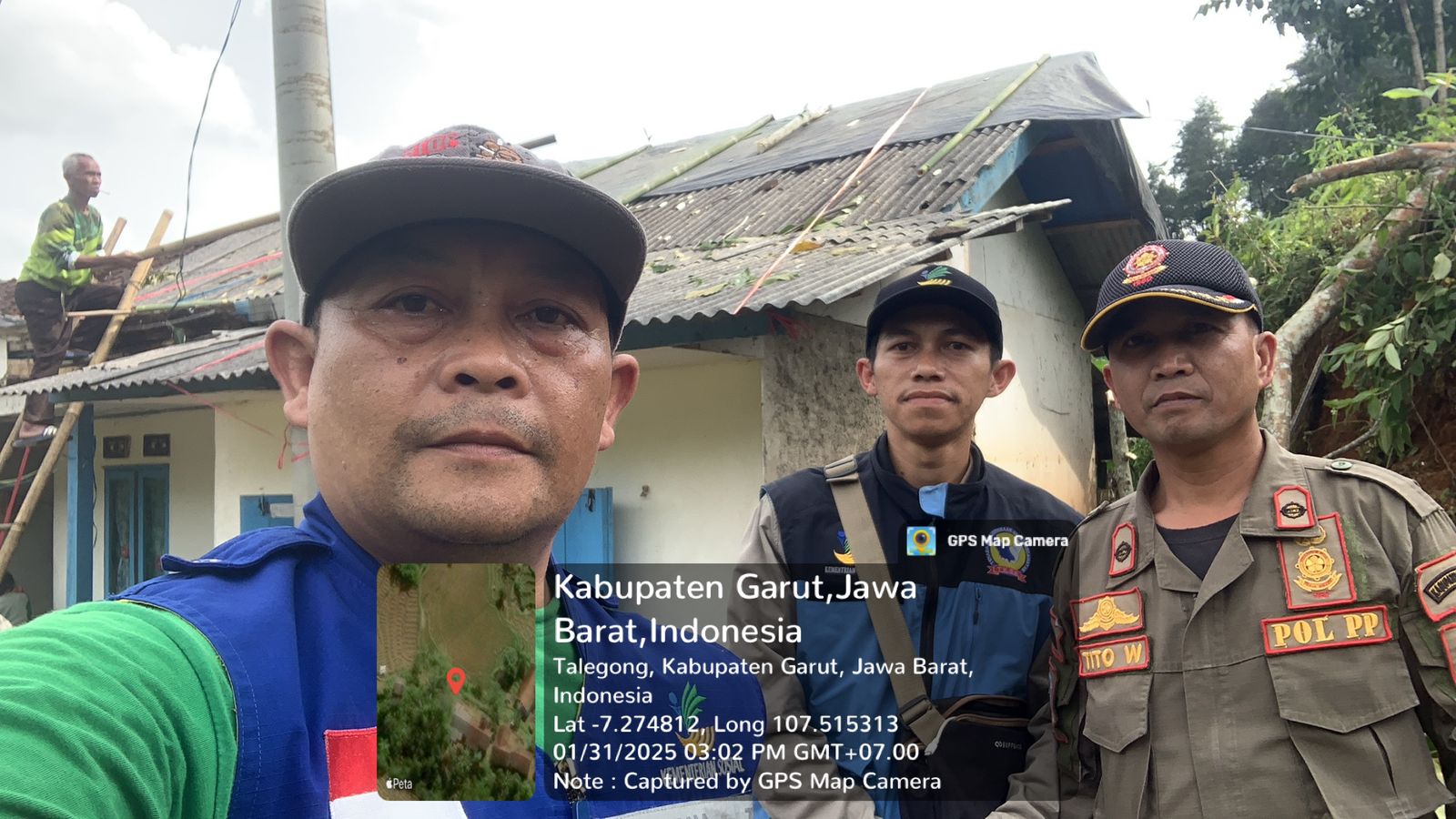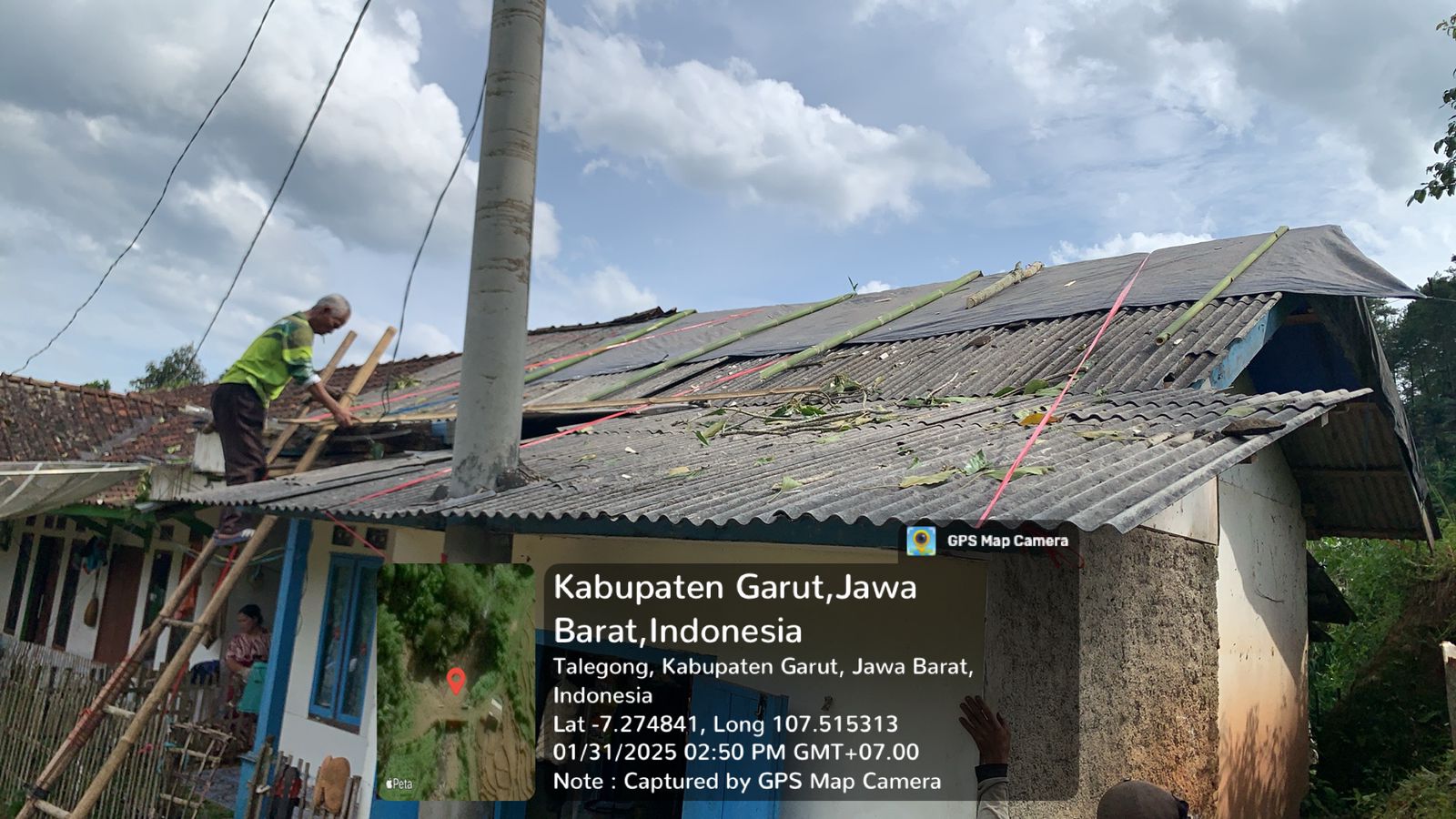 Camat Talegong, Muhammad Badar Hamid, melaporkan bahwa warga bersama perangkat desa, Satpol PP, TKSK, dan Tagana telah melakukan upaya penanganan darurat dengan memasang terpal sementara untuk melindungi rumah dari cuaca.
