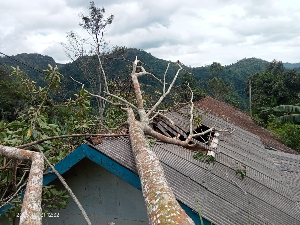 GARUT BERKABAR, Talegong – Sebuah rumah di Kampung Cikiruh, Desa Sukamulya, Kecamatan Talegong, mengalami kerusakan setelah tertimpa pohon kemiri yang tumbang akibat angin kencang pada Jumat (31/1) pukul 13.00 WIB.