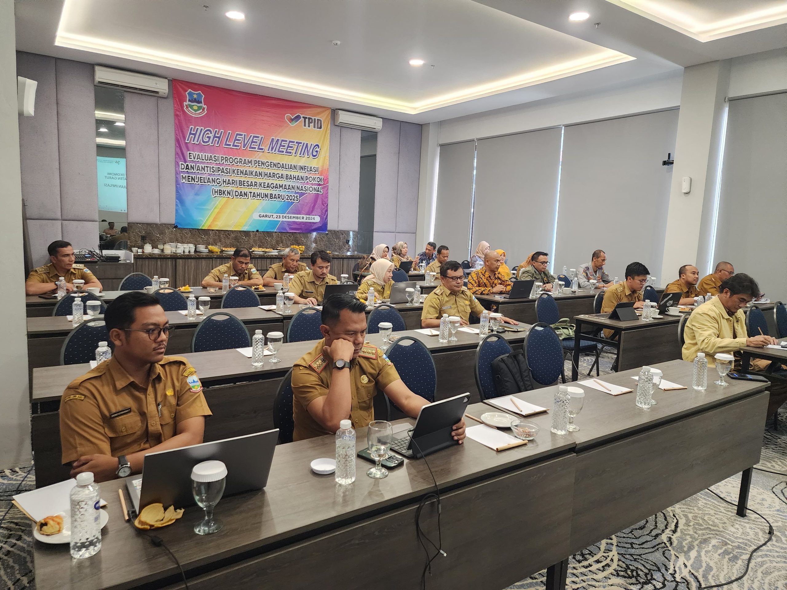 GARUT BERKABAR, Tarogong Kaler – Pemerintah Kabupaten Garut, melalui Sekretaris Daerah (Sekda) Nurdin Yana, resmi membuka High Level Meeting Tim Pengendalian Inflasi Daerah (TPID) di Ballroom Hotel Harmoni, Jalan Cipanas Baru, Kecamatan Tarogong Kaler, Senin (23/12/2024).