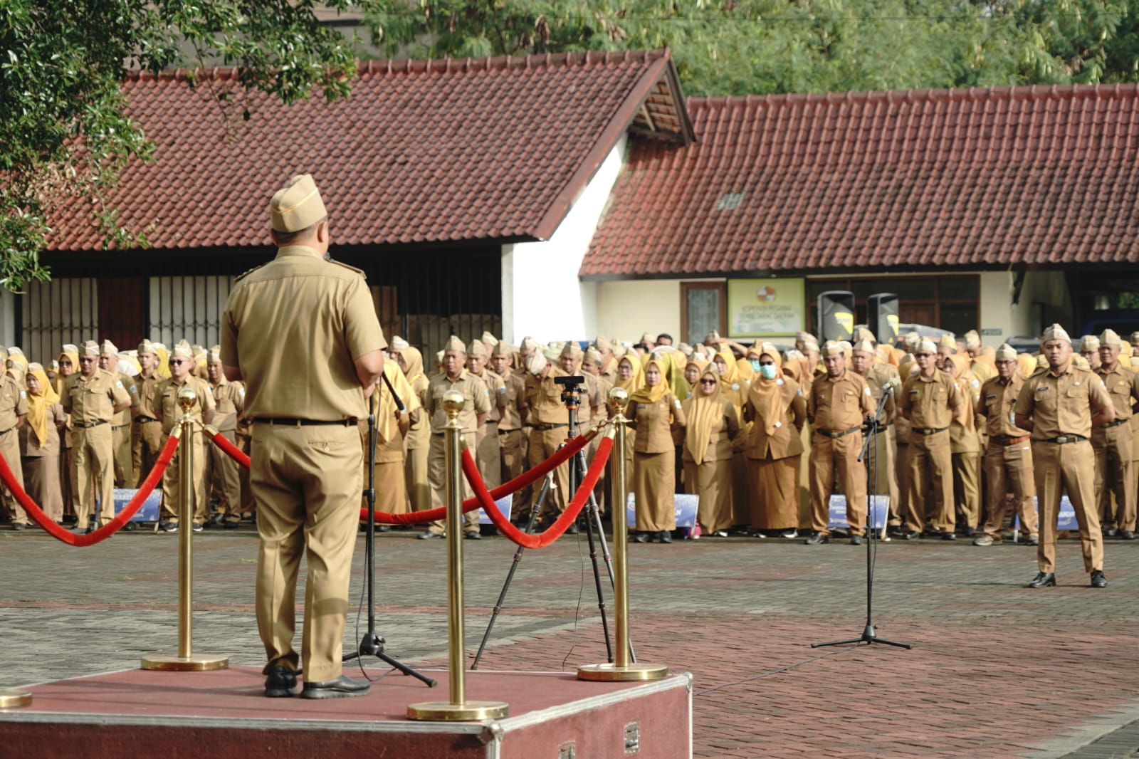 Bupati Garut Abdusy Syakur Amin memimpin Apel Gabungan ASN Pemerintah Kabupaten Garut di Lapangan Sekretariat Daerah (Setda), Jalan Pembangunan, Tarogong Kidul, Senin (9/2/2026).