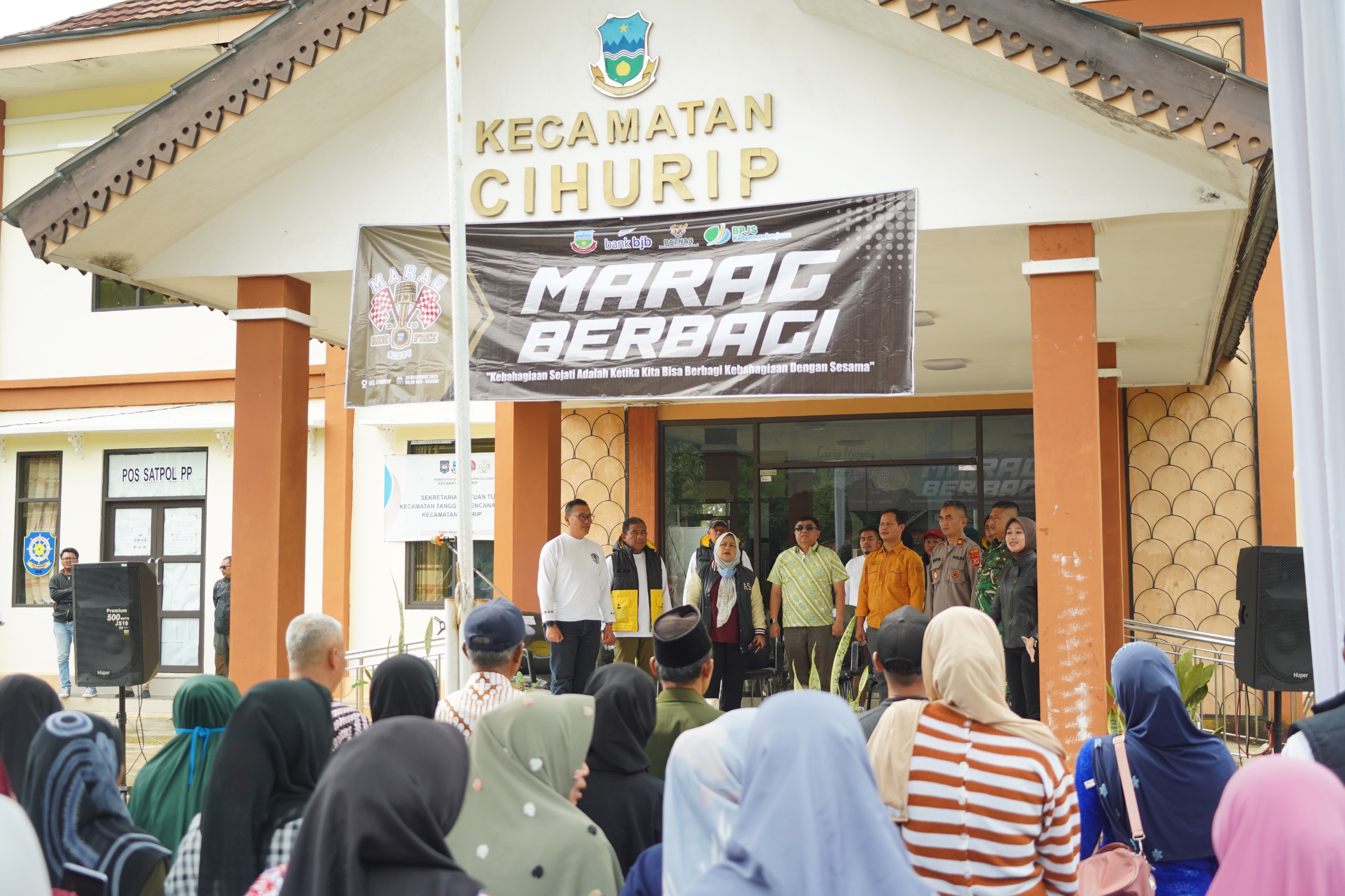 Bupati Garut bersama Komunitas MARAG saat melaksanakan kegiatan bakti sosial di Kantor Kecamatan Cihurip, Kabupaten Garut, Sabtu (20/12/2025).