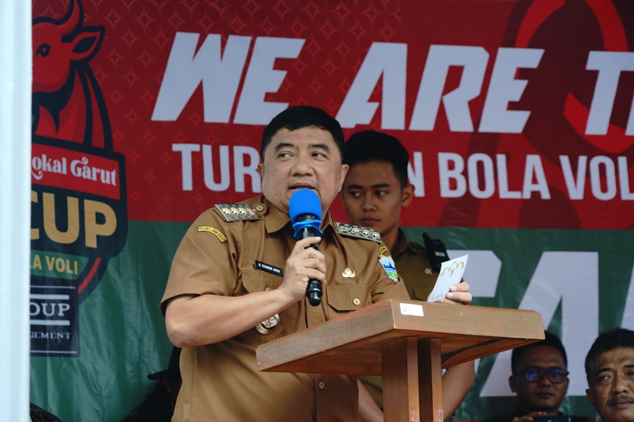 Bupati Garut, Abdusy Syakur Amin, menghadiri penutupan Turnamen Bola Voli “Pangauban Open Lokal Garut Sapi Cup” di Desa Pangauban, Kecamatan Cisurupan, Senin (13/10/2025). Ajang ini disambut antusias masyarakat dan diharapkan dapat memperkuat kebersamaan serta menggerakkan ekonomi lokal.