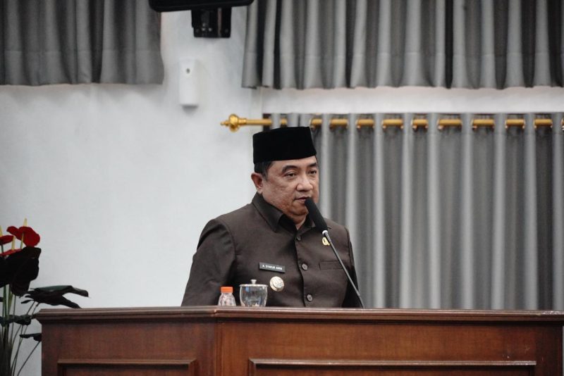 Bupati Garut, Abdusy Syakur Amin, menyampaikan Laporan Keterangan Pertanggungjawaban (LKPJ) Tahun Anggaran 2025 dalam Rapat Paripurna DPRD Kabupaten Garut Masa Sidang II Tahun Sidang 2026 yang digelar di Ruang Rapat Paripurna DPRD, Jalan Patriot, Kecamatan Tarogong Kidul, Senin (30/3/2026).