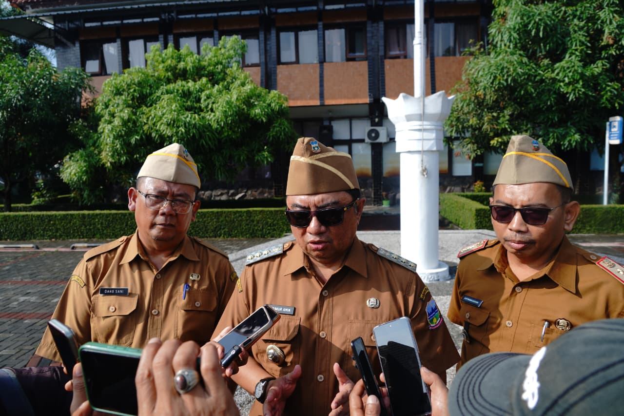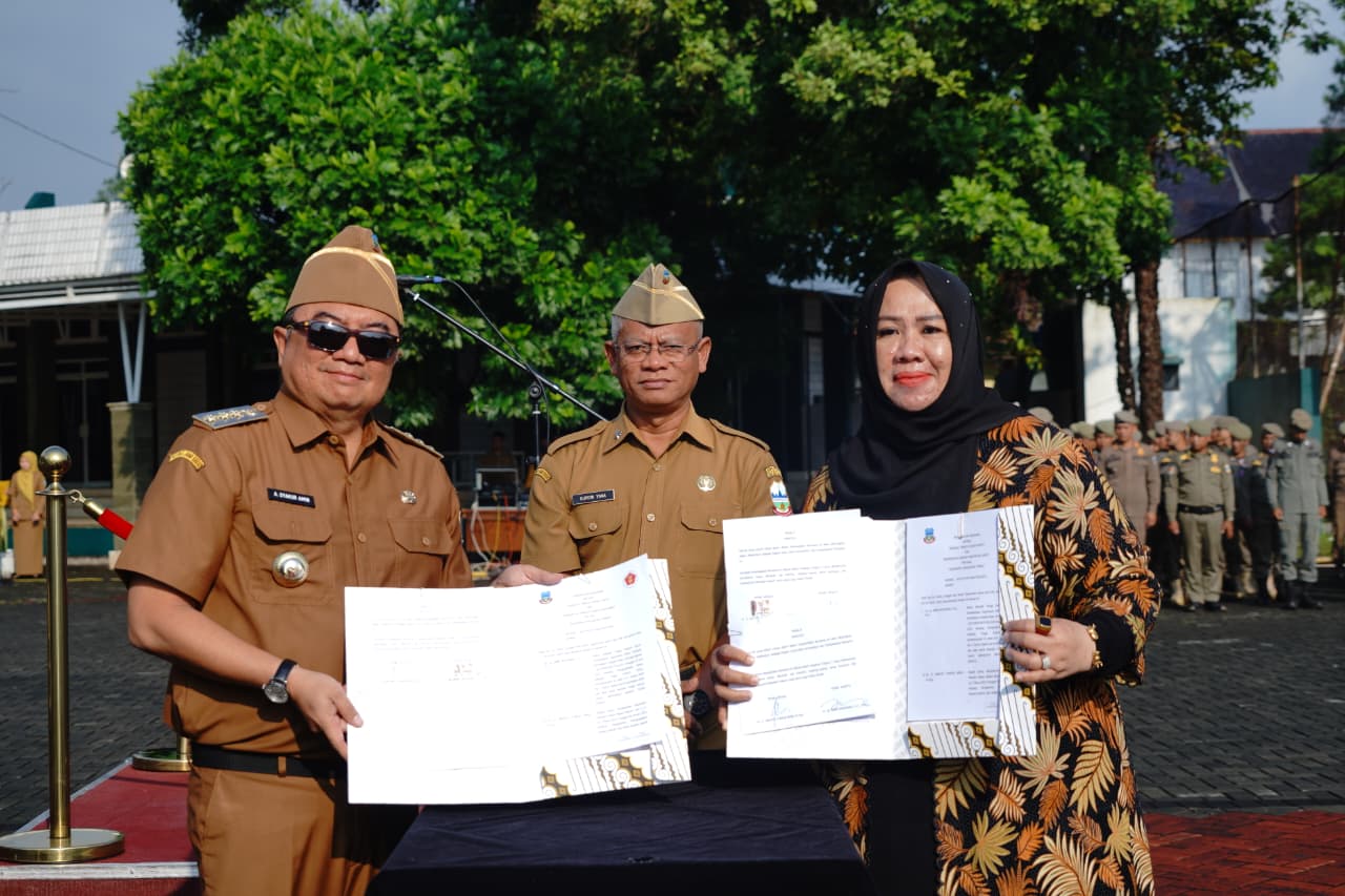 Bupati Garut, Abdusy Syakur Amin, memimpin apel gabungan Pemkab Garut yang dirangkaikan dengan penyerahan penghargaan pemenang Lomba Menulis Surat untuk Bupati, di Lapangan Setda Garut, Senin (1/9/2025).