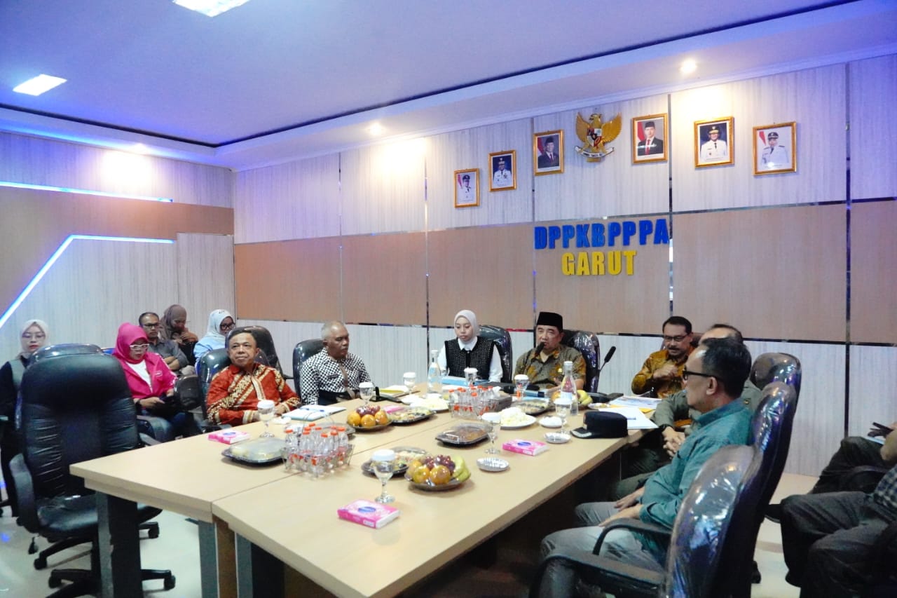 Bupati Garut mengikuti Zoom Meeting penanganan kekerasan terhadap perempuan dan anak yang digelar di Kantor DPPKBPPPA Kabupaten Garut, Jum’at (4/7/2025).