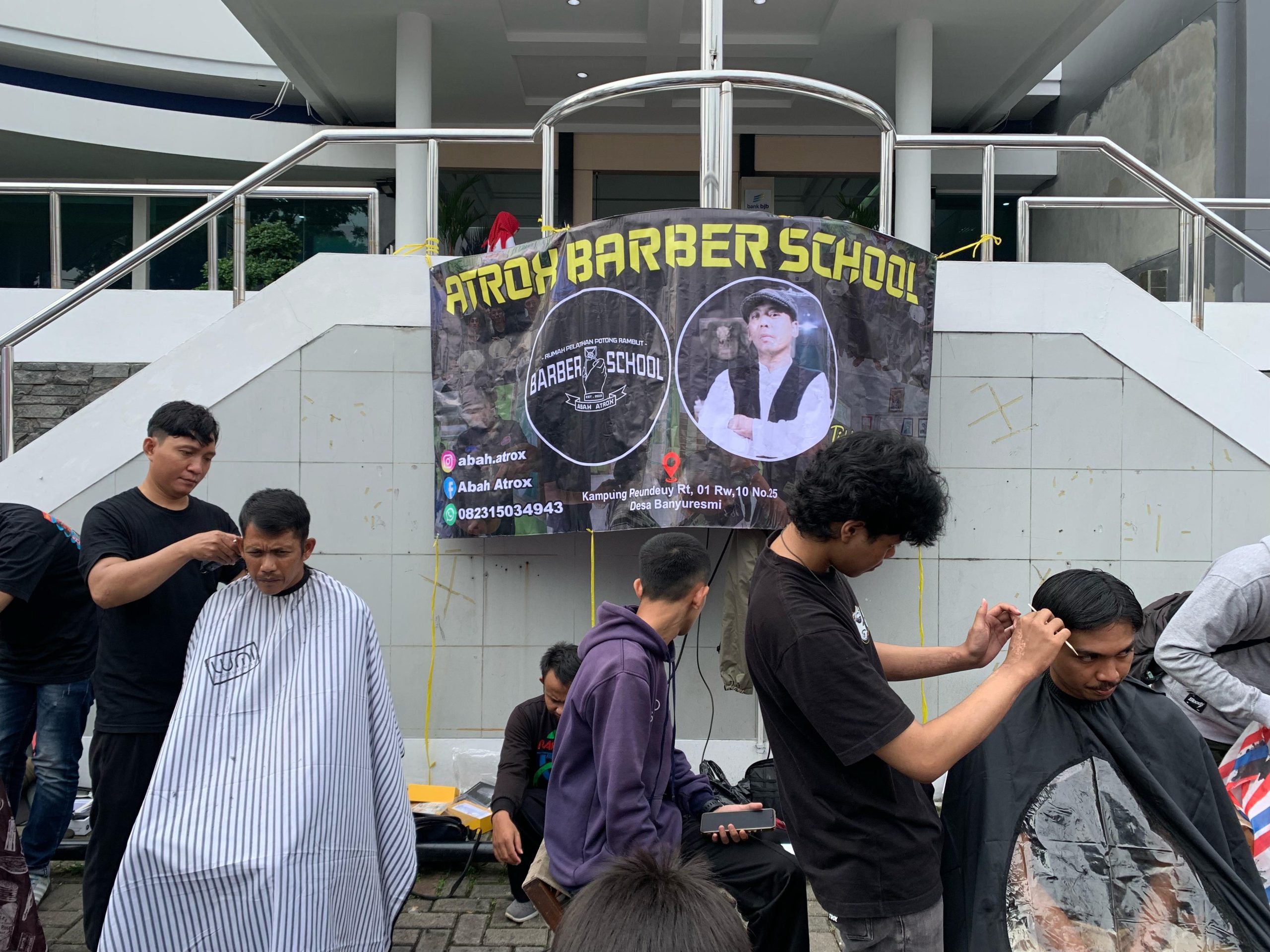 Dalam kesempatan ini, Barber School Abah Atrox membawa 14 kru, termasuk 10 siswa yang ikut ambil bagian dalam layanan cukur gratis. Ia mengungkapkan bahwa antusiasme masyarakat sangat tinggi.