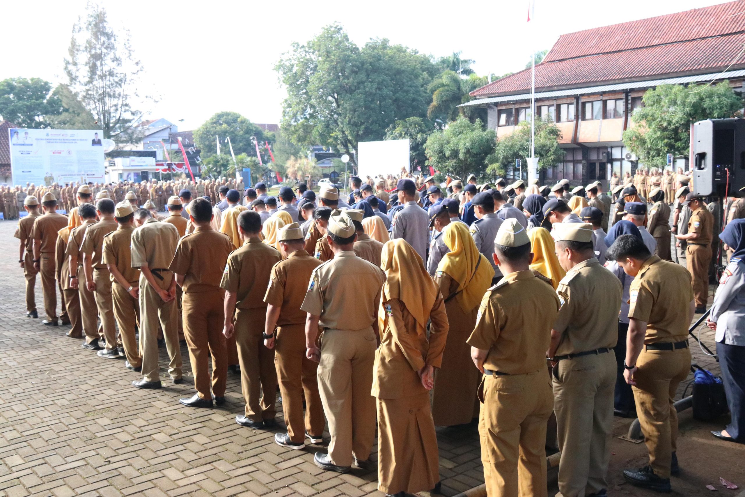 GARUT BERKABAR, TAROGONG KIDUL — Pemerintah Kabupaten Garut menunjukkan komitmen nyata dalam mendukung pelaksanaan Sensus Ekonomi 2026. Hal ini ditandai dengan penyerahan kartu BPJS Ketenagakerjaan kepada 1.425 petugas mitra statistik Badan Pusat Statistik (BPS) Kabupaten Garut oleh Bupati Garut, Abdusy Syakur Amin, saat memimpin apel gabungan di Lapangan Setda Garut, Senin (4/8/2025).