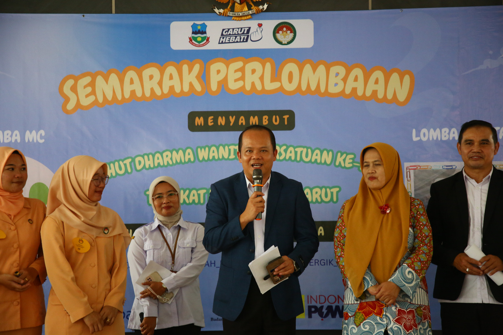 GARUT BERKABAR, Tarogong Kidul – Menjelang peringatan Hari Ulang Tahun (HUT) Dharma Wanita Persatuan (DWP) ke-26, DWP Kabupaten Garut mengadakan rangkaian “Semarak Perlombaan” yang berlangsung pada Rabu (19/11/2025) di Aula Dinas Sosial (Dinsos) Kabupaten Garut, Jalan Patriot, Tarogong Kidul. Kegiatan ini menjadi ajang bagi para anggota DWP untuk menampilkan kemampuan sekaligus mengembangkan kompetensi dalam bidang public speaking dan seni kreativitas.