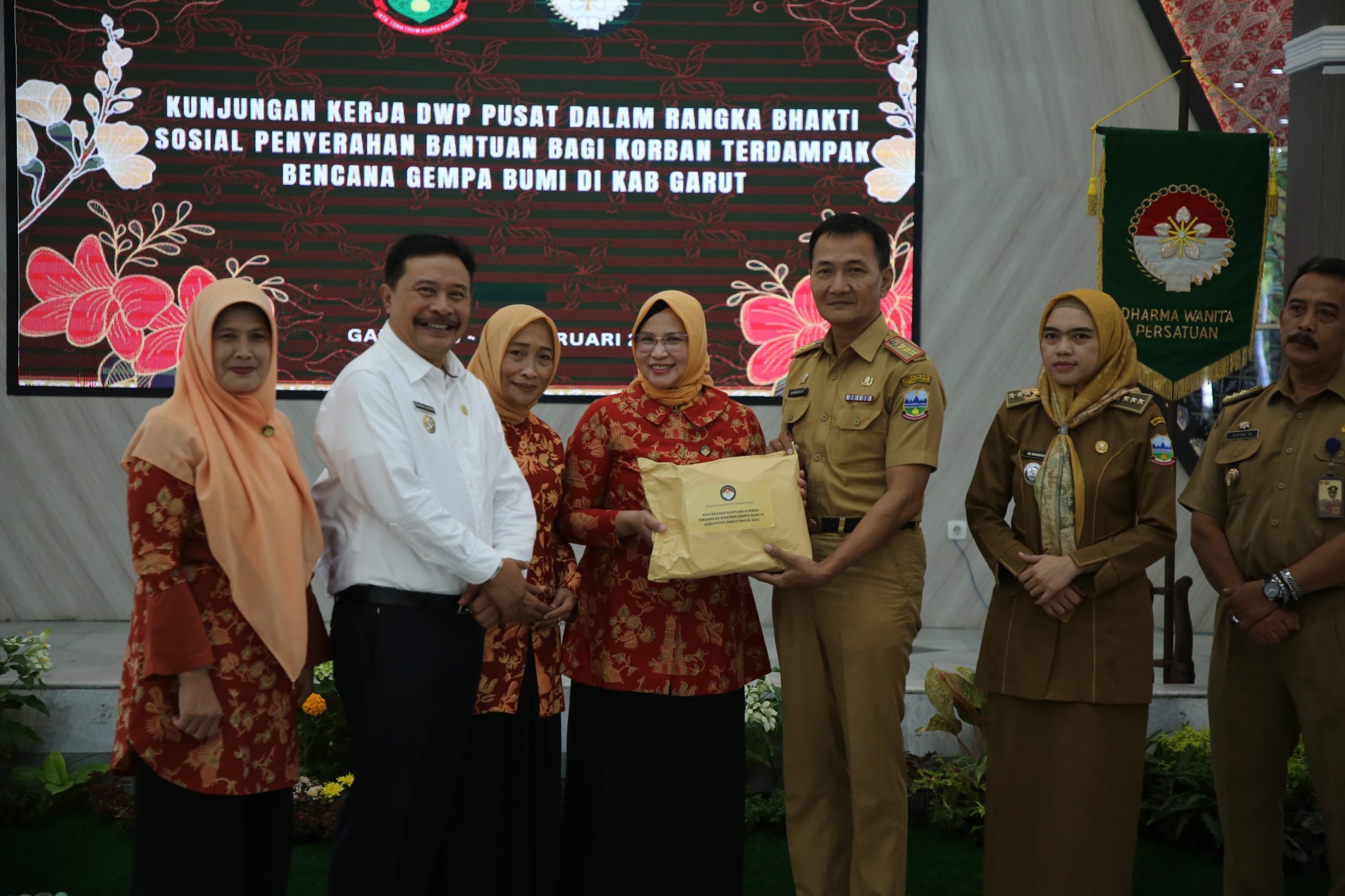 Penjabat (Pj) Bupati Garut, Barnas Adjidin, menyampaikan apresiasinya atas perhatian yang diberikan DWP Pusat kepada warganya. Ia menegaskan bahwa Garut merupakan daerah rawan bencana, termasuk gempa bumi serta bencana hidrometeorologi seperti banjir bandang dan tanah longsor.