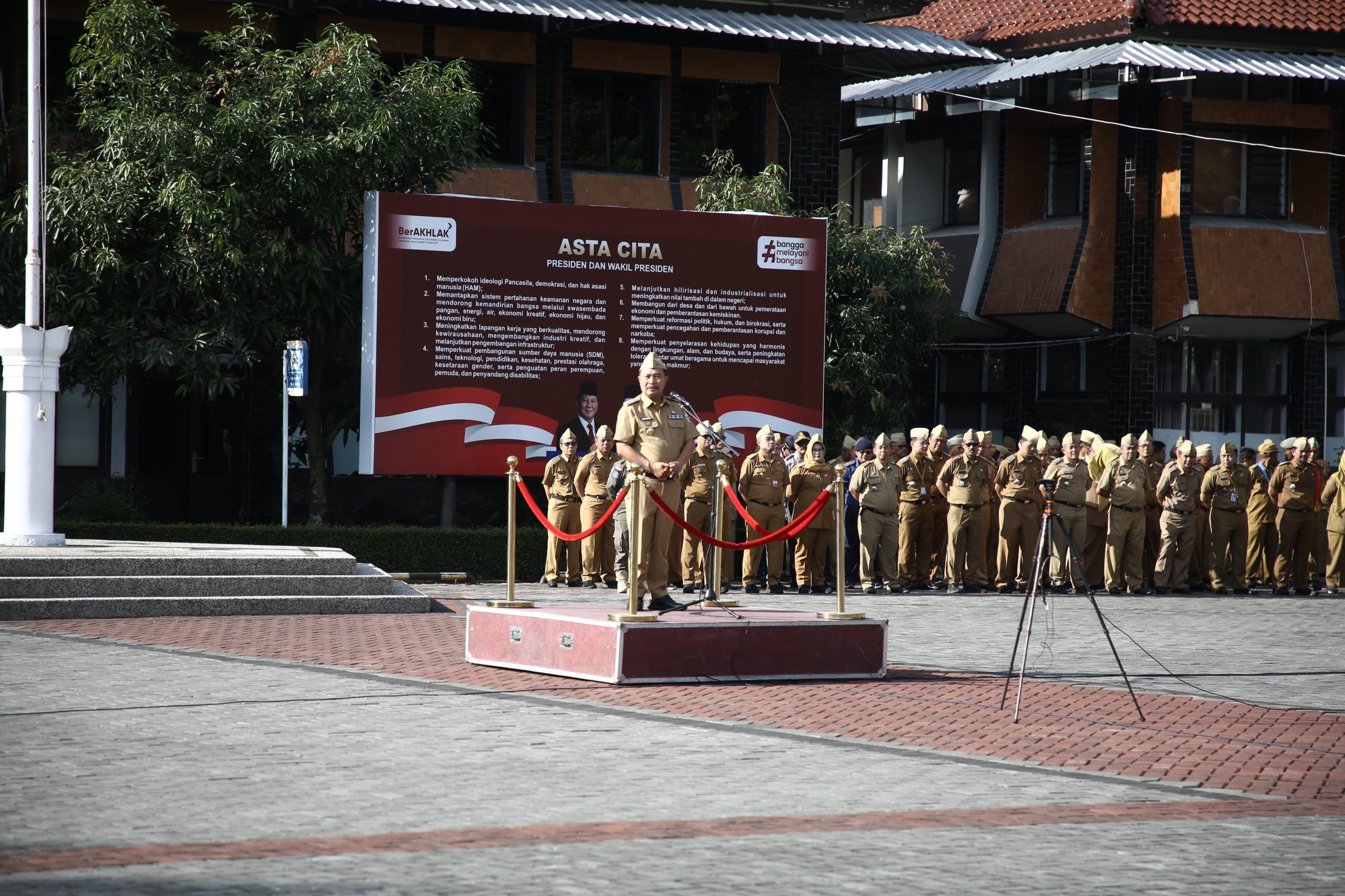GARUT BERKABAR, Tarogong Kidul – Penjabat (Pj) Bupati Garut, Barnas Adjidin, memulai tahun 2025 dengan memimpin apel gabungan perdana di Lingkungan Pemerintah Kabupaten (Pemkab) Garut. Acara tersebut berlangsung di Lapangan Sekretariat Daerah (Setda) Kabupaten Garut, Jalan Pembangunan, Kecamatan Tarogong Kidul, Senin (6/1/2025).