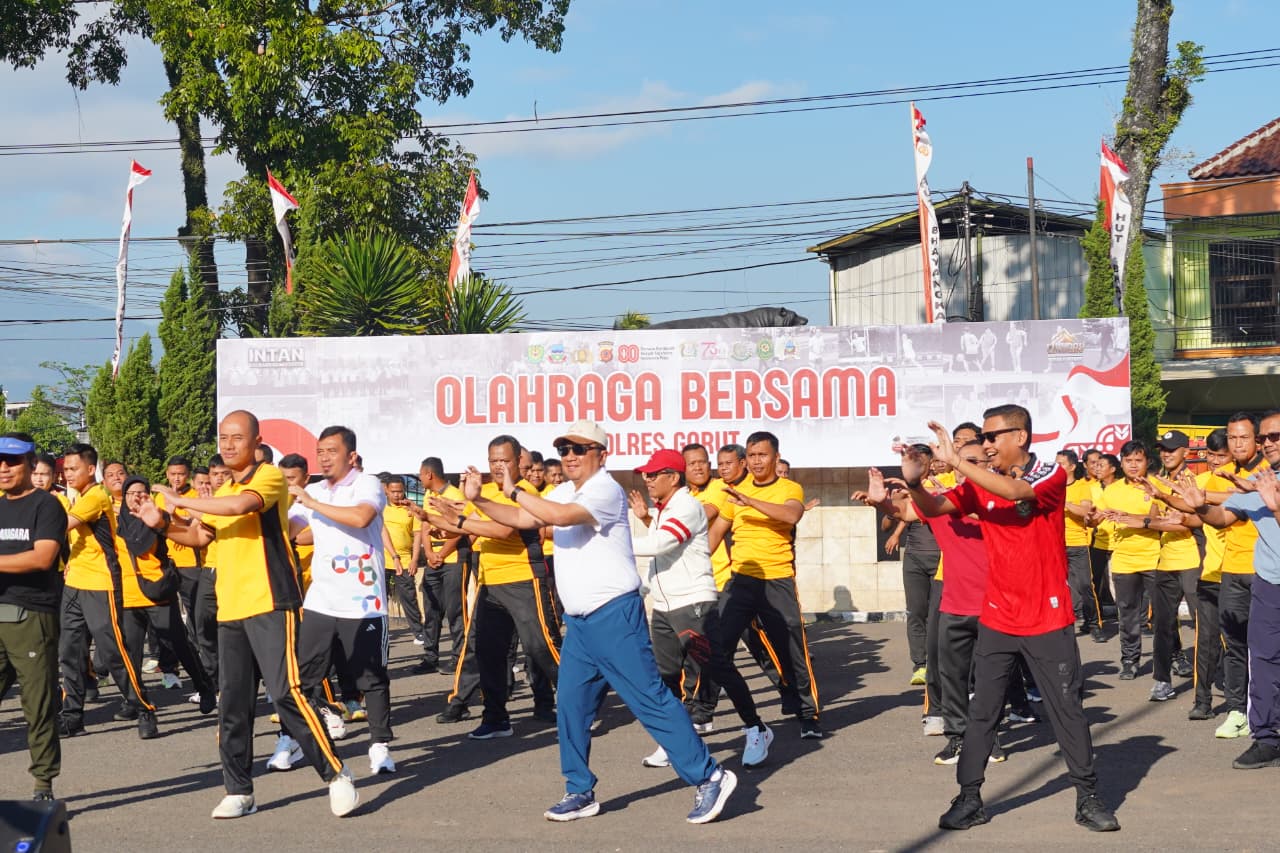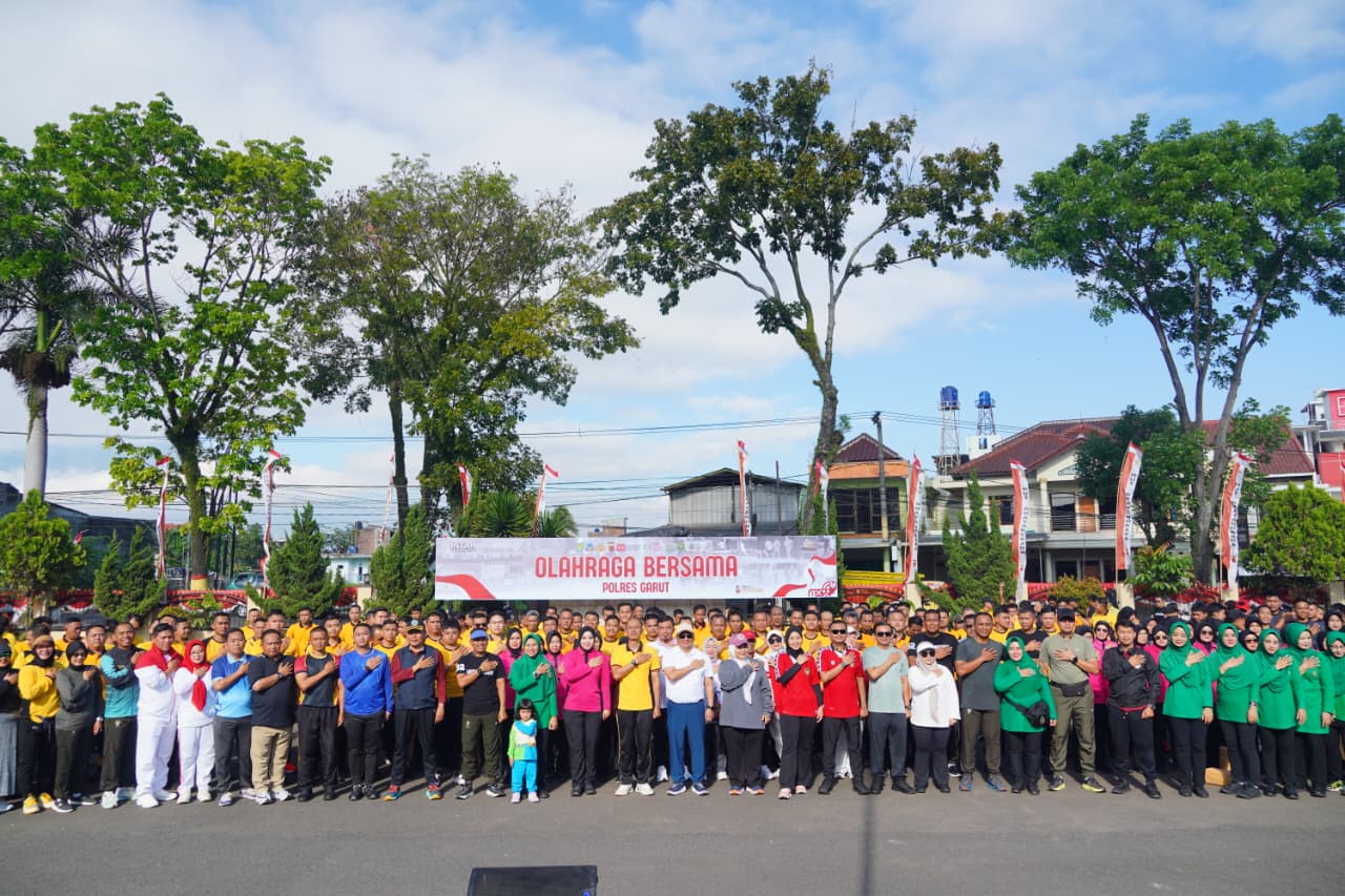 Dalam rangka menyambut HUT RI ke-80, Polres Garut menggelar Olahraga Bersama Forkopimda dan instansi se-Kabupaten Garut di Markas Polres Garut, Karangpawitan, Sabtu (16/8/2025).