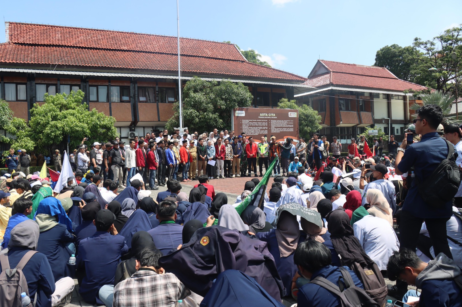 Menariknya, jajaran Forum Koordinasi Pimpinan Daerah (Forkopimda) Kabupaten Garut, mulai dari Bupati, Wakil Bupati, Kapolres, Dandim 0611, Kajari, hingga Ketua DPRD Garut hadir langsung di tengah massa. Mereka tidak hanya berdiri di depan barisan, melainkan ikut duduk bersila bersama mahasiswa dan warga, menciptakan ruang dialog yang hangat dan setara.