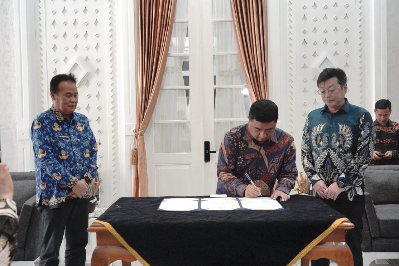 Bupati Garut, Abdusy Syakur Amin, menerima Kunjungan Kerja Delegasi Kota Higashikawa, Jepang, dalam rangka Penandatanganan Pelaksanaan Kerja Sama Luar Negeri di Ruang Pamengkang Pendopo Garut, Kecamatan Garut Kota, Rabu (17/12/2025).