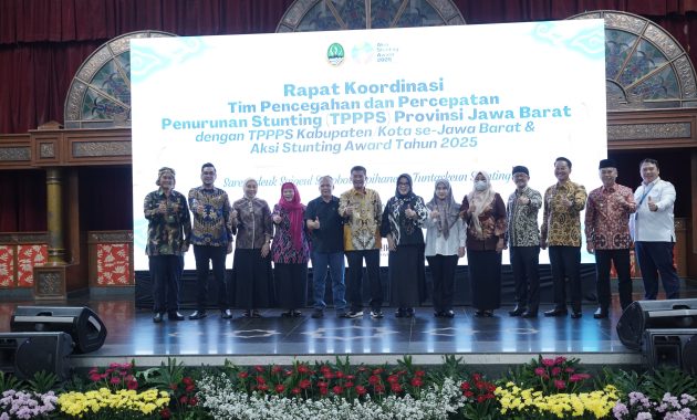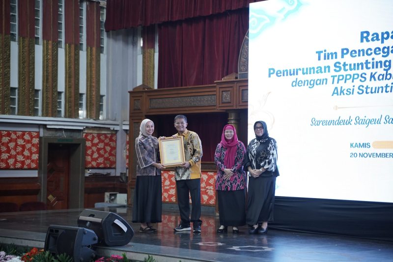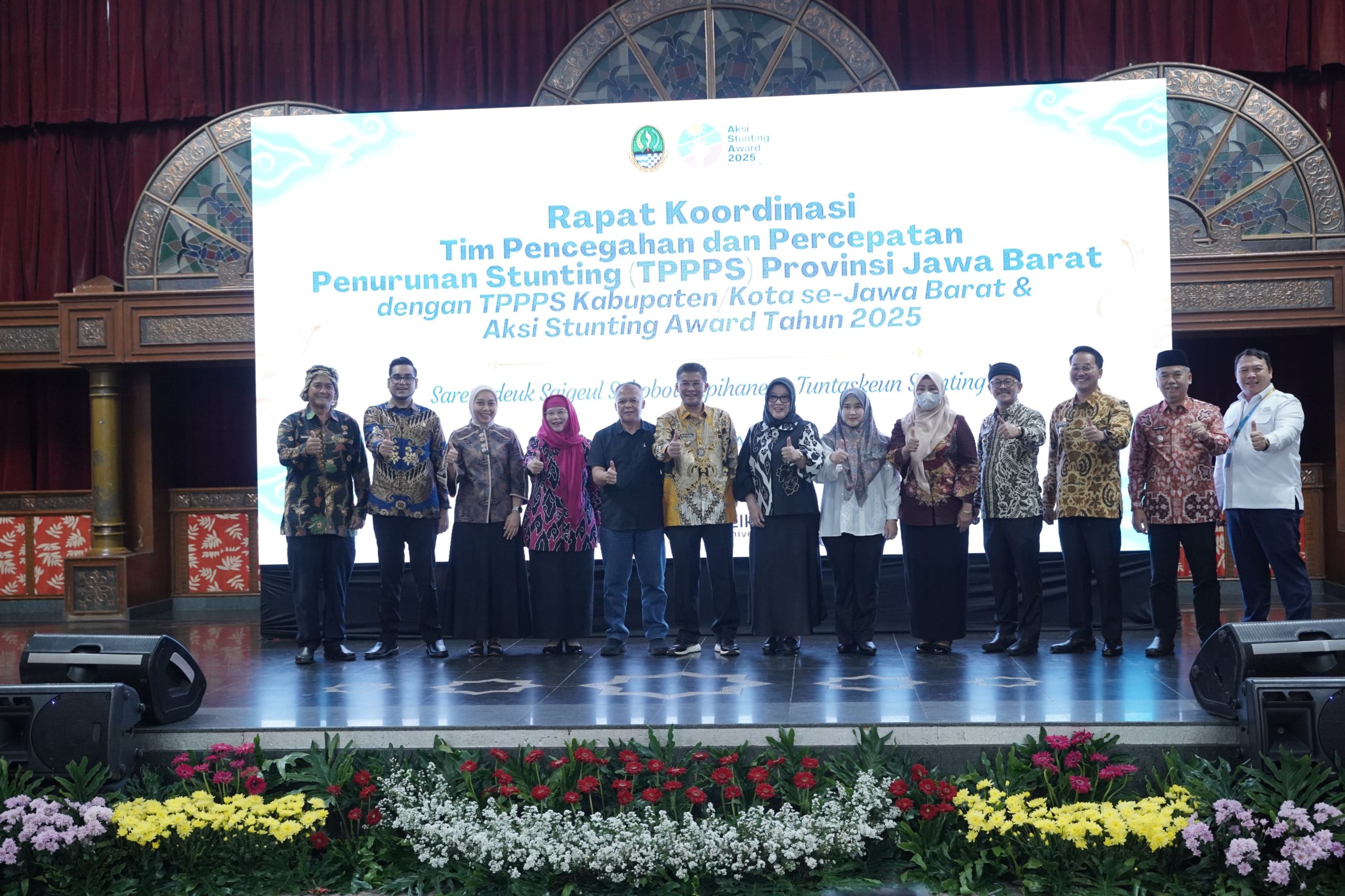 Penghargaan diserahkan dalam Rapat Koordinasi Tim Pencegahan dan Percepatan Penurunan Stunting (TPPPS) Jawa Barat yang digelar di Bale Asri Pusdai, Kota Bandung, Kamis (20/11/2025).