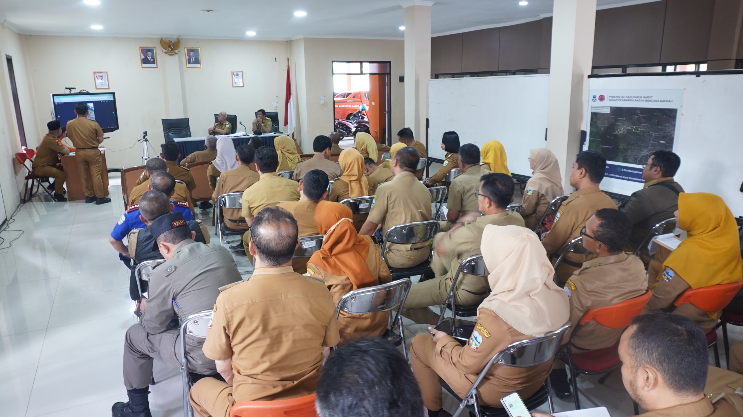 Dalam rapat tersebut, hadir sejumlah pejabat terkait, termasuk Kepala Pelaksana BPBD Garut Aah Anwar, Asisten Pemerintahan dan Kesejahteraan Rakyat Bambang Hafidz, serta beberapa kepala dinas lainnya.