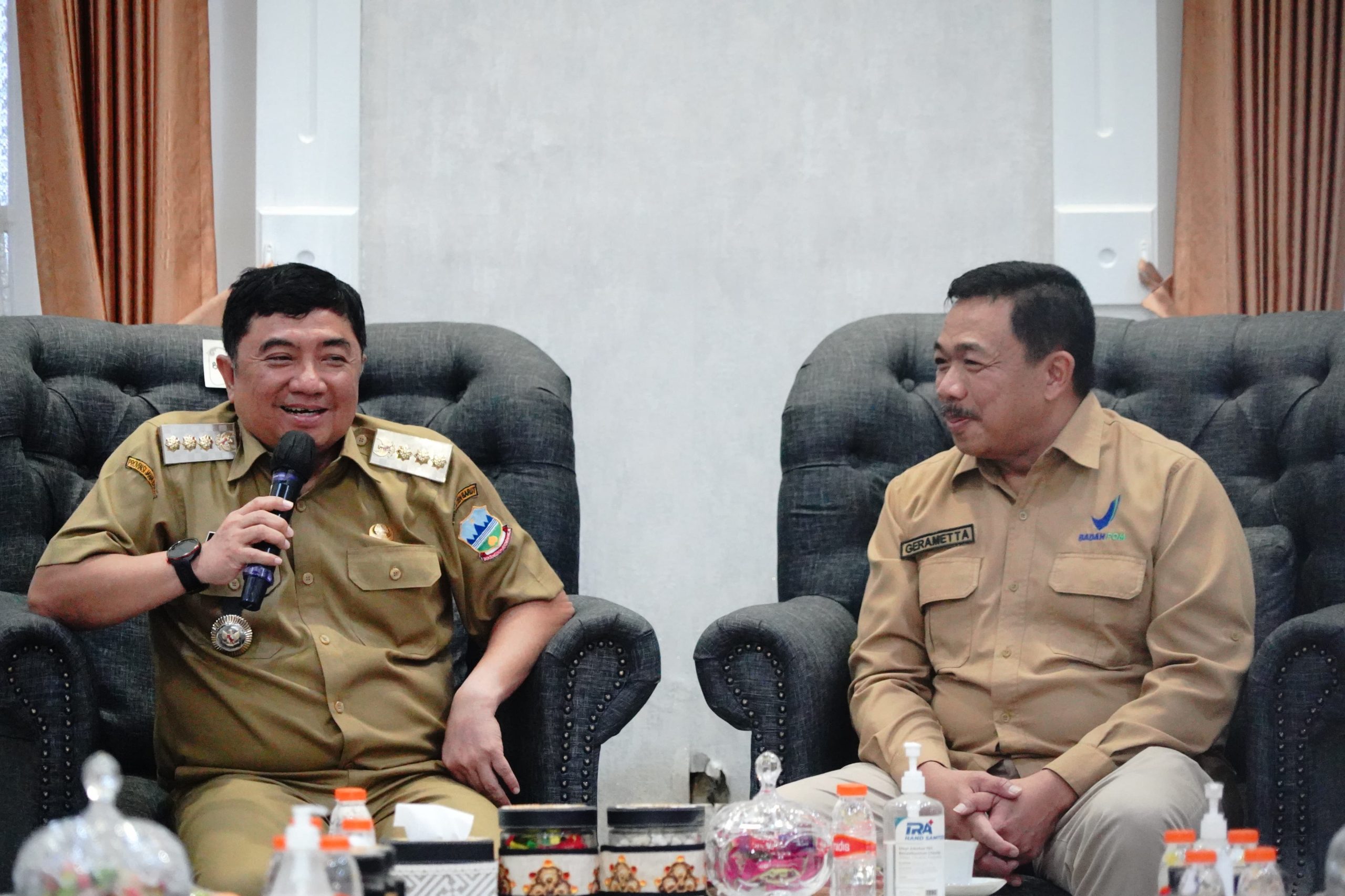 Bupati Garut, Abdusy Syakur Amin, berdiskusi dengan Kepala BBPOM Bandung, I Made Bagus Gerametta, terkait penguatan program pengawasan makanan dan obat, di Pamengkang Pendopo, Garut Kota, Selasa (29/7/2025).
