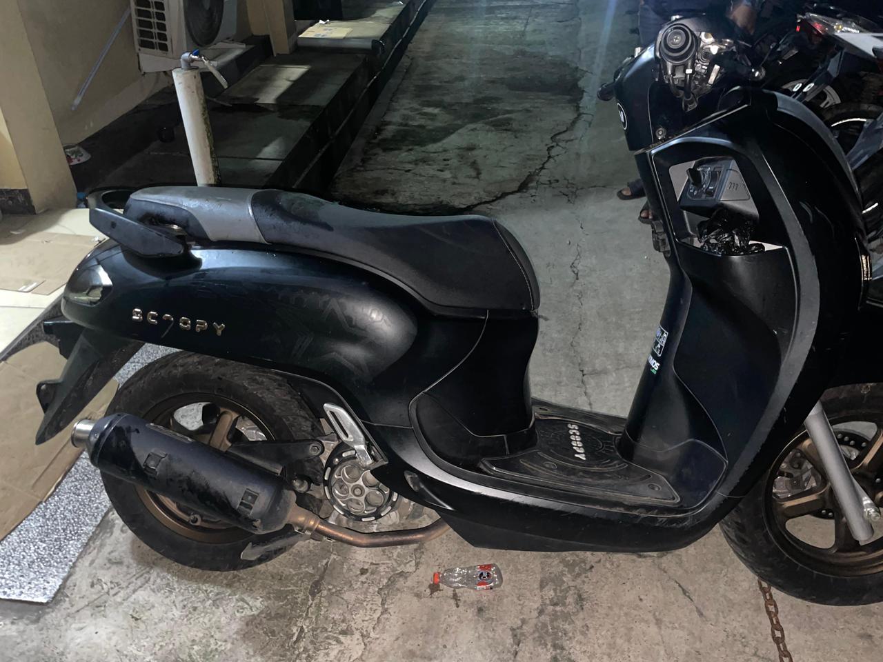 Dalam penangkapan tersebut, petugas turut mengamankan sejumlah barang bukti berupa satu unit sepeda motor Honda Scoopy, satu unit telepon genggam, senjata tajam jenis golok beserta sarungnya, sepasang pelat nomor kendaraan, serta pakaian yang diduga digunakan pelaku saat beraksi.