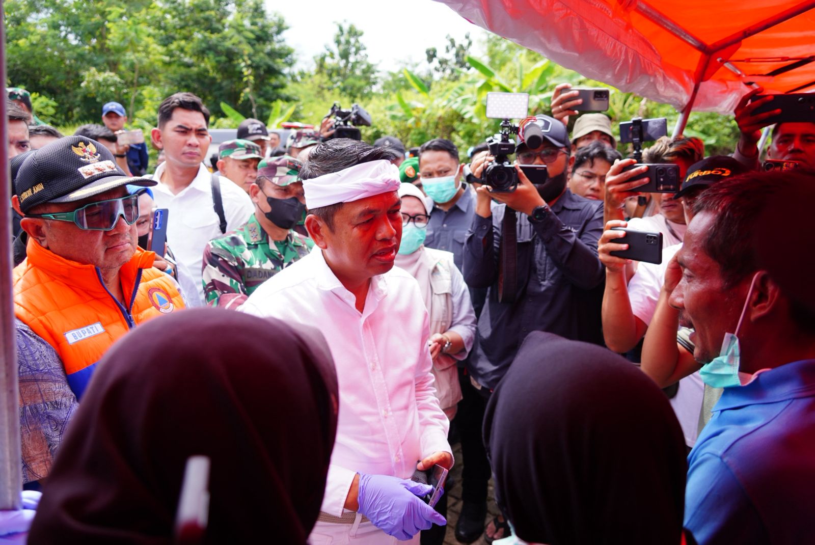 GARUT BERKABAR, Cibalong – Gubernur Jawa Barat, Dedi Mulyadi, didampingi oleh Bupati Garut, Abdusy Syakur Amin, meninjau langsung lokasi tragedi ledakan amunisi usang yang terjadi di Kecamatan Cibalong, Kabupaten Garut, pada Selasa (13/5/2025). Selain meninjau lokasi kejadian, keduanya juga menyempatkan diri untuk bertakziah ke rumah keluarga korban yang terdampak musibah tersebut.