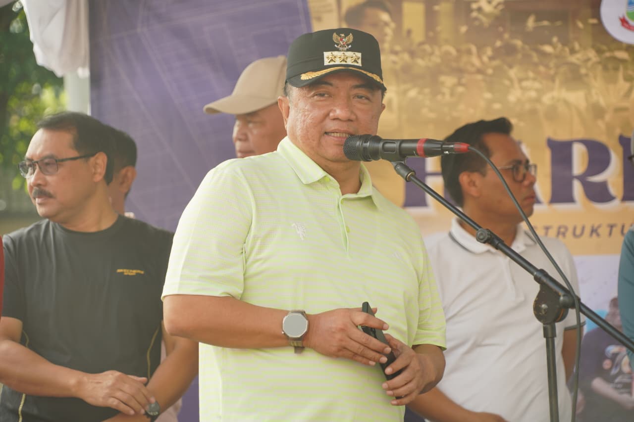 Bupati Garut Abdusy Syakur Amin bersama jajaran mengikuti kegiatan Jalan Sehat dan Aksi Bersih-Bersih Lingkungan dalam rangka Hari Bakti Pekerjaan Umum ke-80 Tahun 2025 tingkat Kabupaten Garut di Kantor Dinas PUPR Kabupaten Garut, Jalan Raya Samarang, Kecamatan Tarogong Kidul, Jumat (19/12/2025).