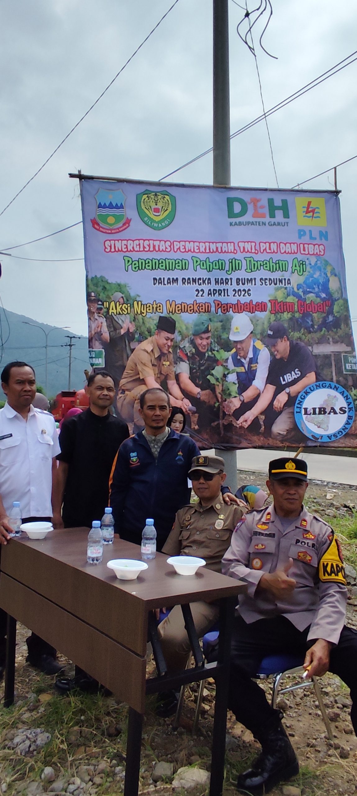 GARUT BERKABAR, Tarogong Kaler – Pemerintah Kabupaten Garut bersama unsur TNI, Polri, PLN, dan komunitas lingkungan Lingkungan Anak Bangsa (LIBAS), menggelar aksi penanaman pohon di Jalan Ibrahim Aji, Rabu (22/4/2026), dalam rangka memperingati Hari Bumi Sedunia.