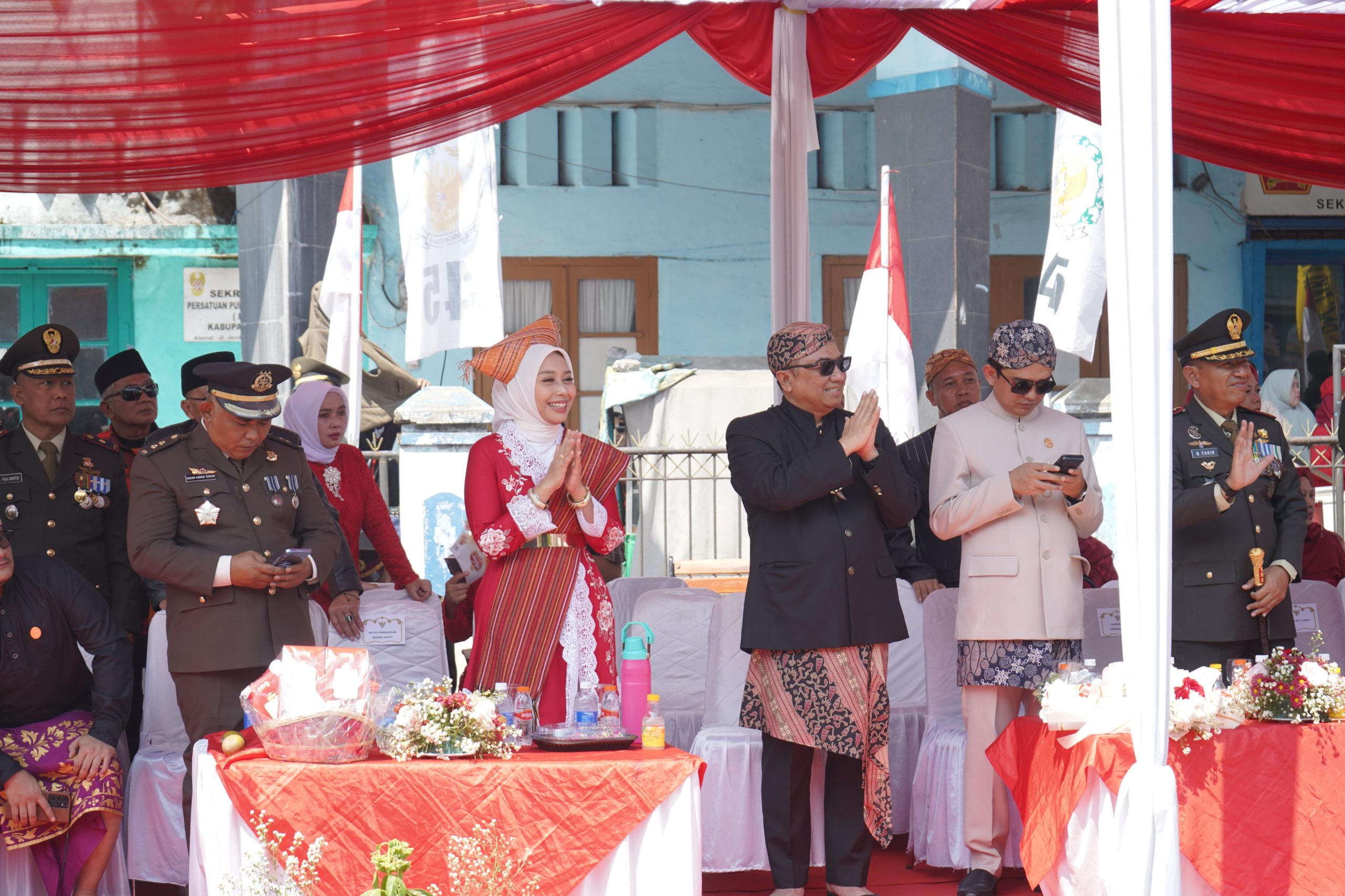 Menjelang sore, rangkaian acara dilanjutkan dengan gelar seni, di antaranya Marching Band SMPN 1 Cibatu, tari Jaipong Galura Kencana, serta penampilan angklung dari Perhimpunan Penggiat Angklung Indonesia (PPAI). Upacara penurunan bendera kemudian menutup kemeriahan peringatan, dipimpin oleh Kapolsek Cilawu, AKP Hasan Sadikin.(team)