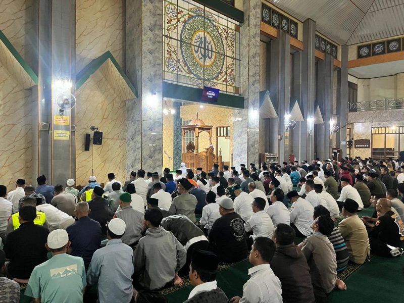 Kapolres Garut AKBP Yugi Bayu Hendarto bersama Forkopimda Kabupaten Garut mengikuti doa bersama di Masjid Agung Garut sebagai ikhtiar spiritual menyambut Tahun Baru 2026, demi terciptanya keamanan, kedamaian, dan kesejahteraan masyarakat. Rabu malam (31/12/2025).