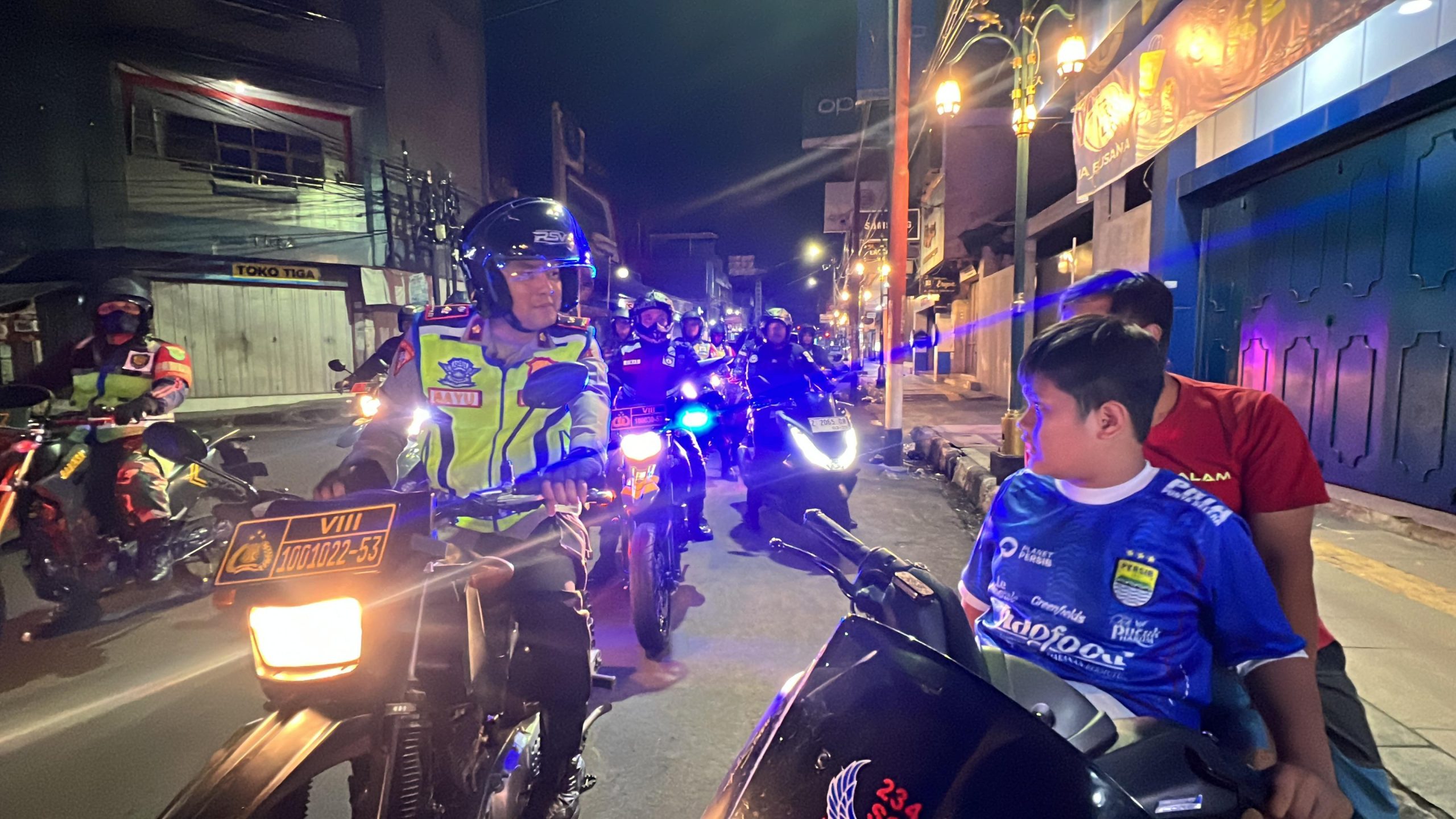 Mulai pukul 21.00 WIB, petugas melaksanakan Patroli Blue Light dan metode “Park, Walk and Talk” dengan mendatangi pusat aktivitas masyarakat untuk memberikan imbauan langsung agar tetap waspada terhadap potensi kejahatan jalanan, peredaran miras, hingga aksi premanisme.