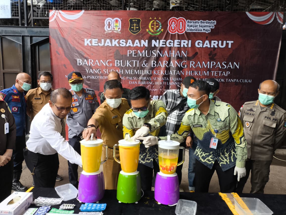 Pemusnahan barang bukti inkrah yang digelar Kejaksaan Negeri Garut di Kantor Kejari, Jalan Merdeka, Tarogong Kidul, Selasa (19/8/2025).
