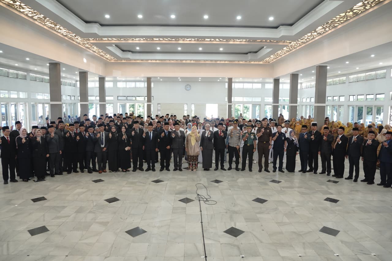 Ketua DPRD Kabupaten Garut, Aris Munandar, menghadiri dan menyaksikan pelantikan 69 ASN jabatan struktural dan 19 ASN jabatan fungsional di Gedung Pendopo Garut, Kecamatan Garut Kota, Selasa (6/1/2026).