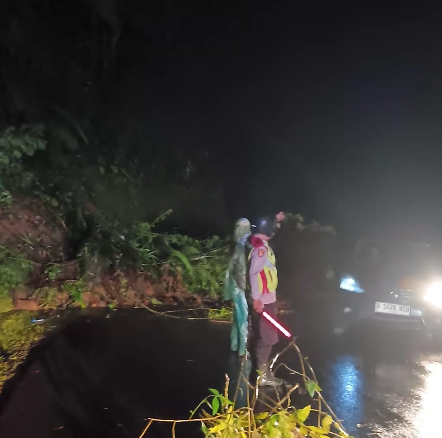 Longsor menutup Jalan Raya Garut–Pameungpeuk di Kampung Cialeuan Gunung Gelap, Desa Mekarwangi, Kecamatan Cihurip. Personel Polsek Banjarwangi turun ke lokasi untuk pengecekan dan pengamanan. Jalur kini dapat dilalui dengan sistem buka tutup sambil menunggu alat berat untuk pembersihan material longsor.Rabu (8/4/2026).