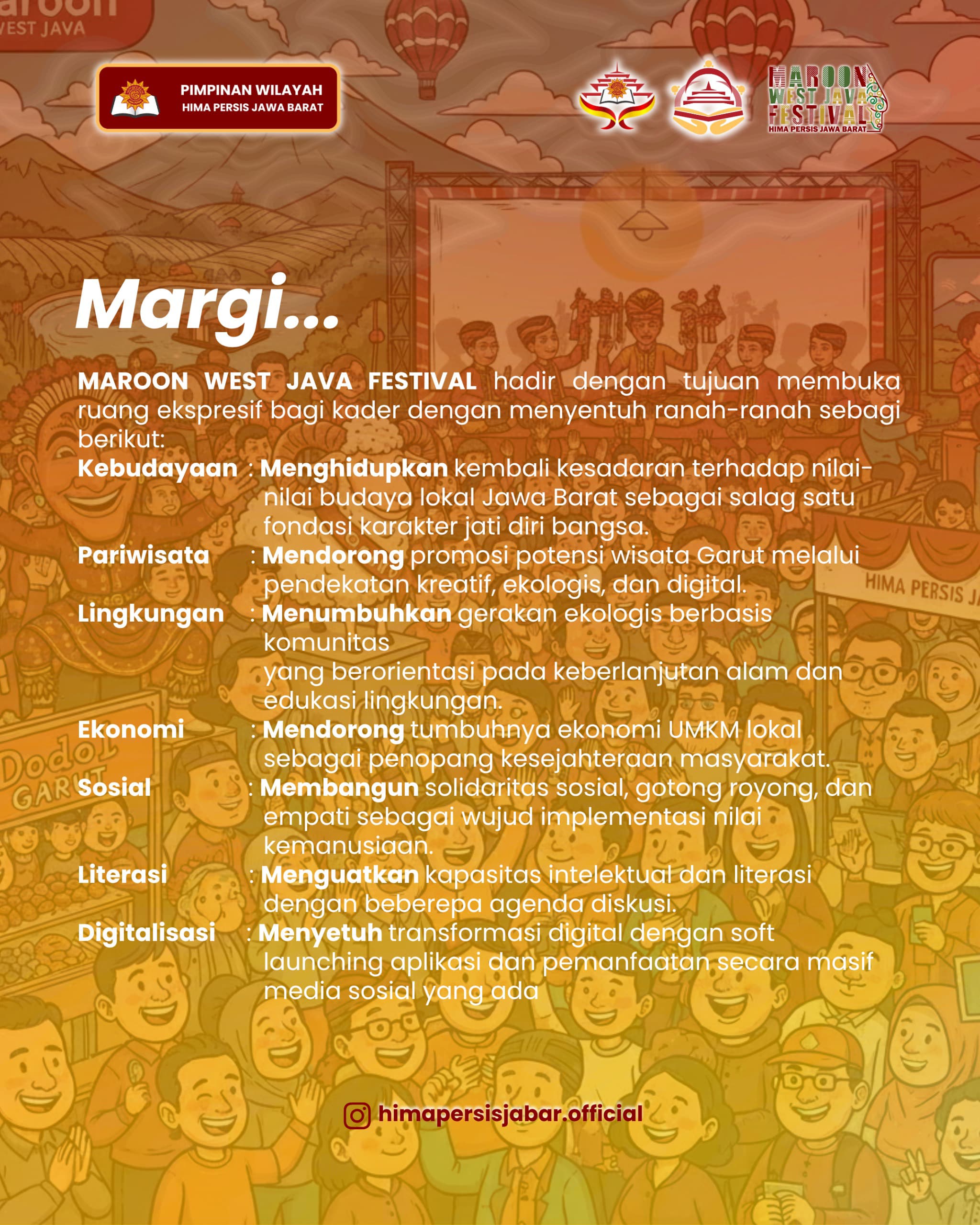 Festival ini menjadi momentum bagi generasi muda untuk menunjukkan potensi, kreativitas, dan kecintaan terhadap budaya lokal Jawa Barat. Dengan mengusung tema “Maroon West Java”, PW Hima Persis Jabar berupaya menghadirkan ruang apresiasi yang memadukan unsur tradisi dengan sentuhan modernitas.