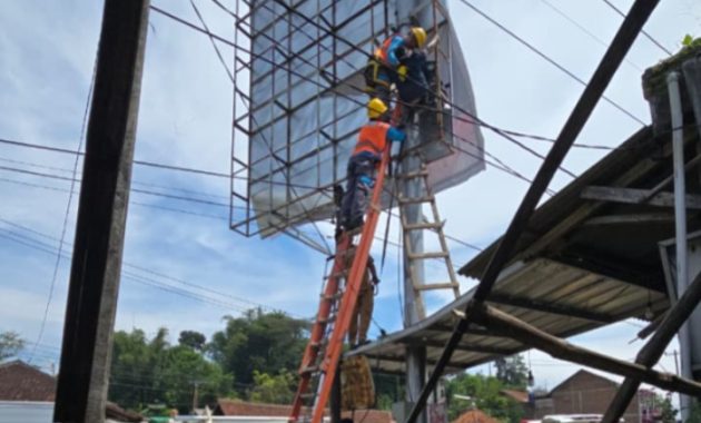 Namun naas, baliho yang sedang dipasang menyambar jaringan kabel listrik di sekitar lokasi, sehingga korban tersengat dan sempat tergantung karena masih terikat tali di atas papan baliho.