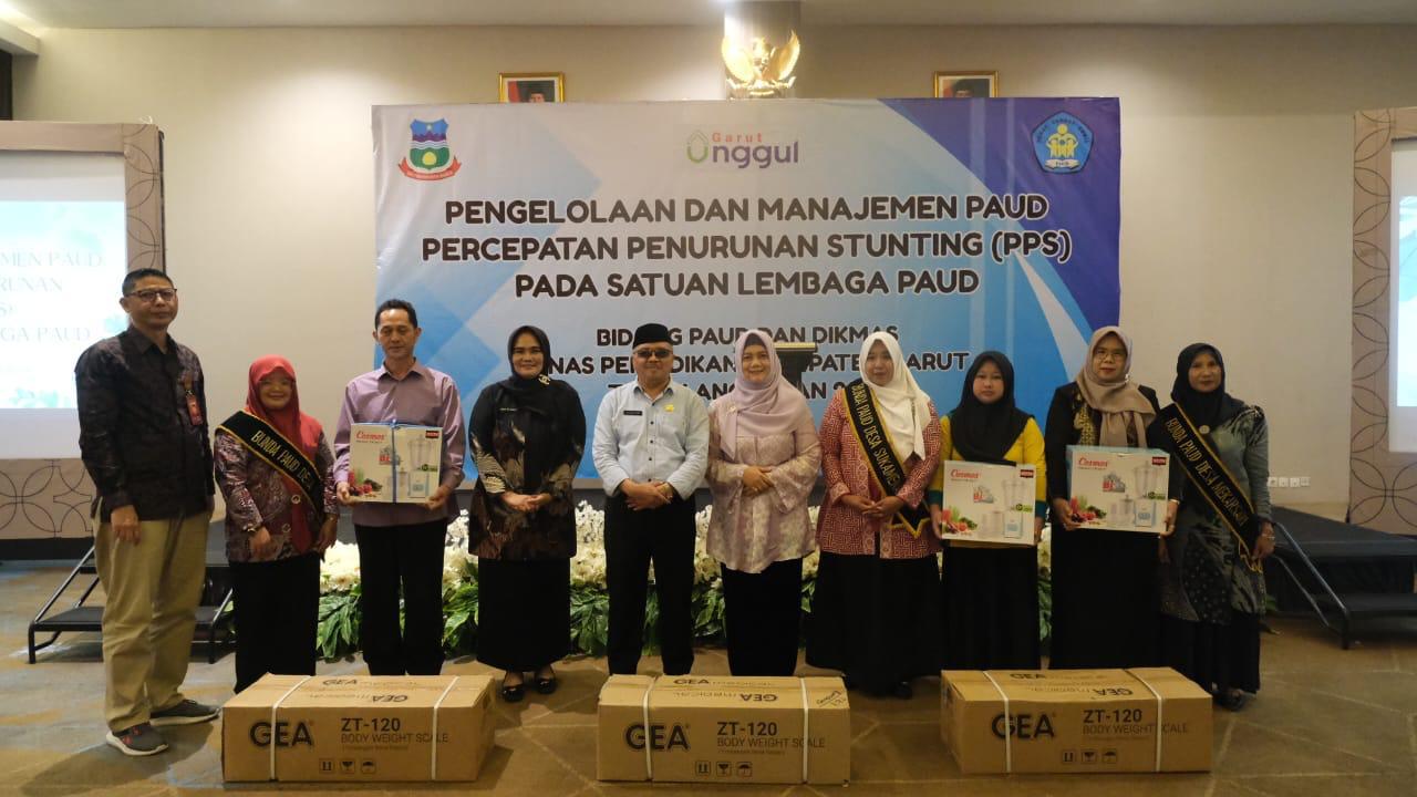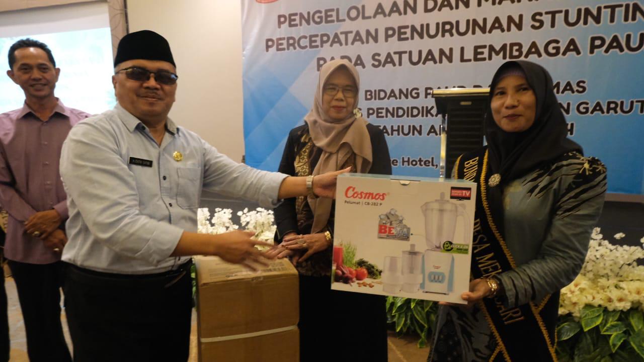 Sebagai bentuk dukungan konkret, Disdik Garut memberikan bantuan berupa timbangan, alat ukur, dan blender kepada 46 lembaga PAUD di desa-desa yang menjadi lokus stunting. Bantuan ini bertujuan memfasilitasi lembaga PAUD dalam melakukan pemantauan tumbuh kembang anak secara rutin sekaligus mengenalkan pola makan sehat kepada anak-anak.
