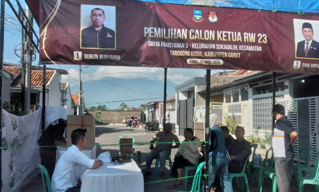 GARUT BERKABAR, Tarogong Kidul – Semangat demokrasi di tingkat akar rumput tampak nyata di Perumahan Griya Pamoyanan 3, Kelurahan Sukagalih, Kecamatan Tarogong Kidul, Kabupaten Garut. Untuk pertama kalinya, warga setempat menggelar Pemilihan Ketua RW 23 pada Sabtu (26/4/2026) dengan partisipasi tinggi dan suasana yang penuh kebersamaan.