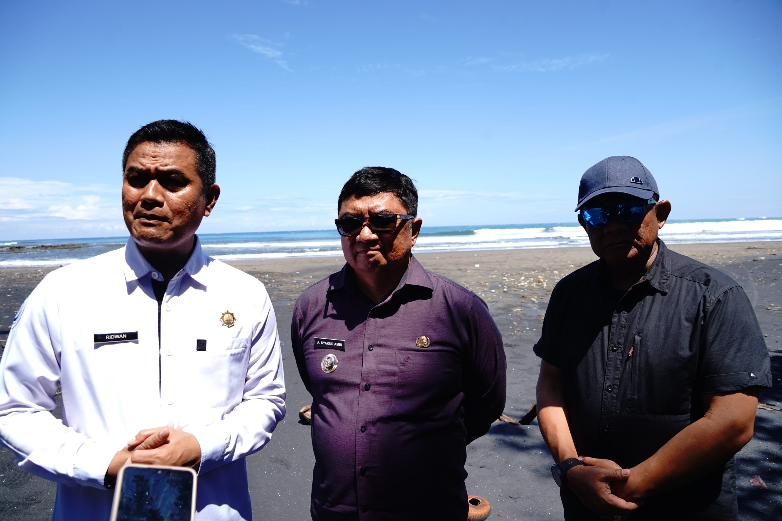 Bupati Garut, Abdusy Syakur Amin, bersama Sekretaris Ditjen Perikanan Tangkap KKP RI, Ridwan Mulyana, saat meninjau lokasi rencana pembangunan pelabuhan di Pantai Cidora, Desa Purbayani, Kecamatan Caringin, Kamis (21/8/2025).
