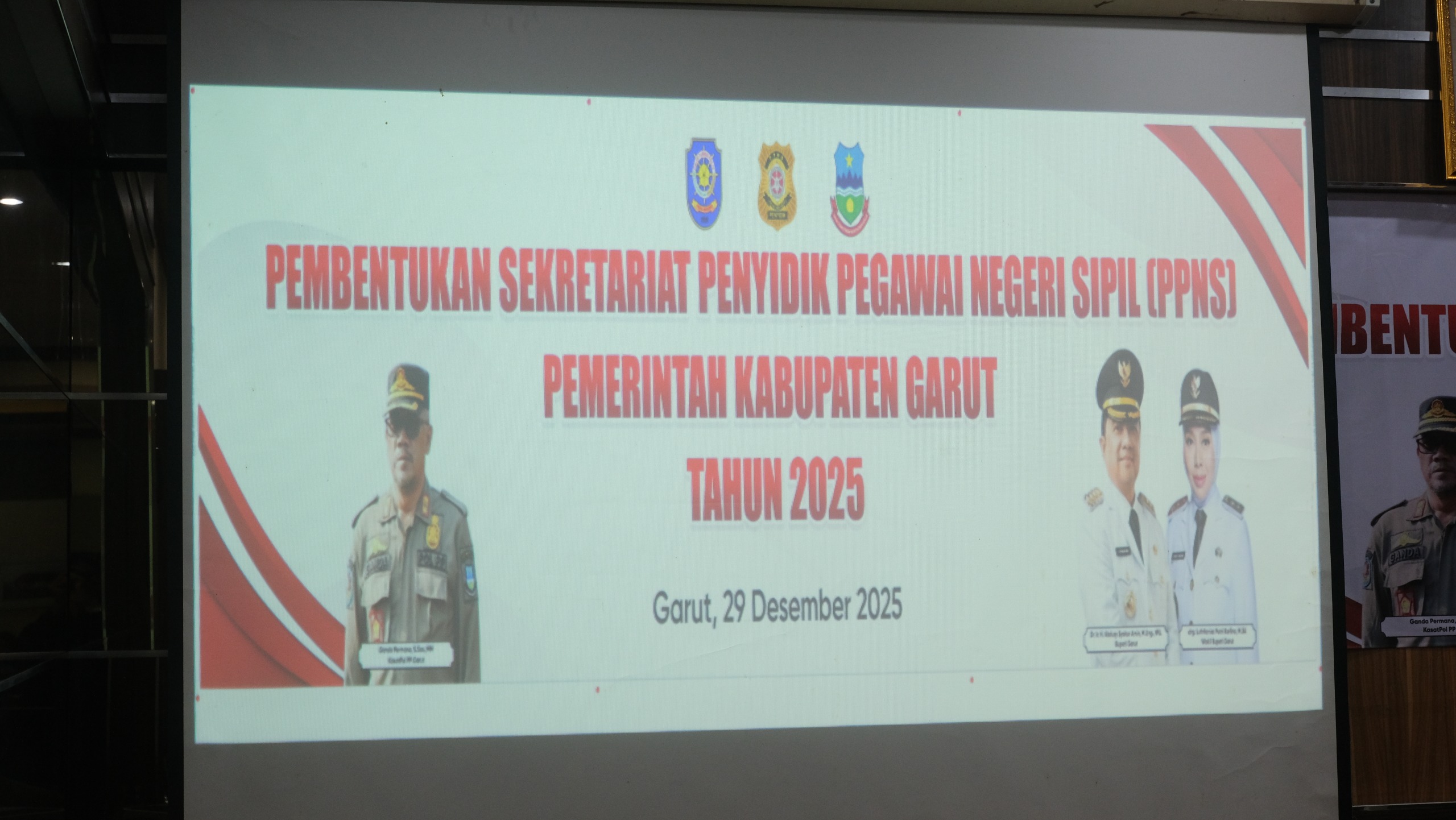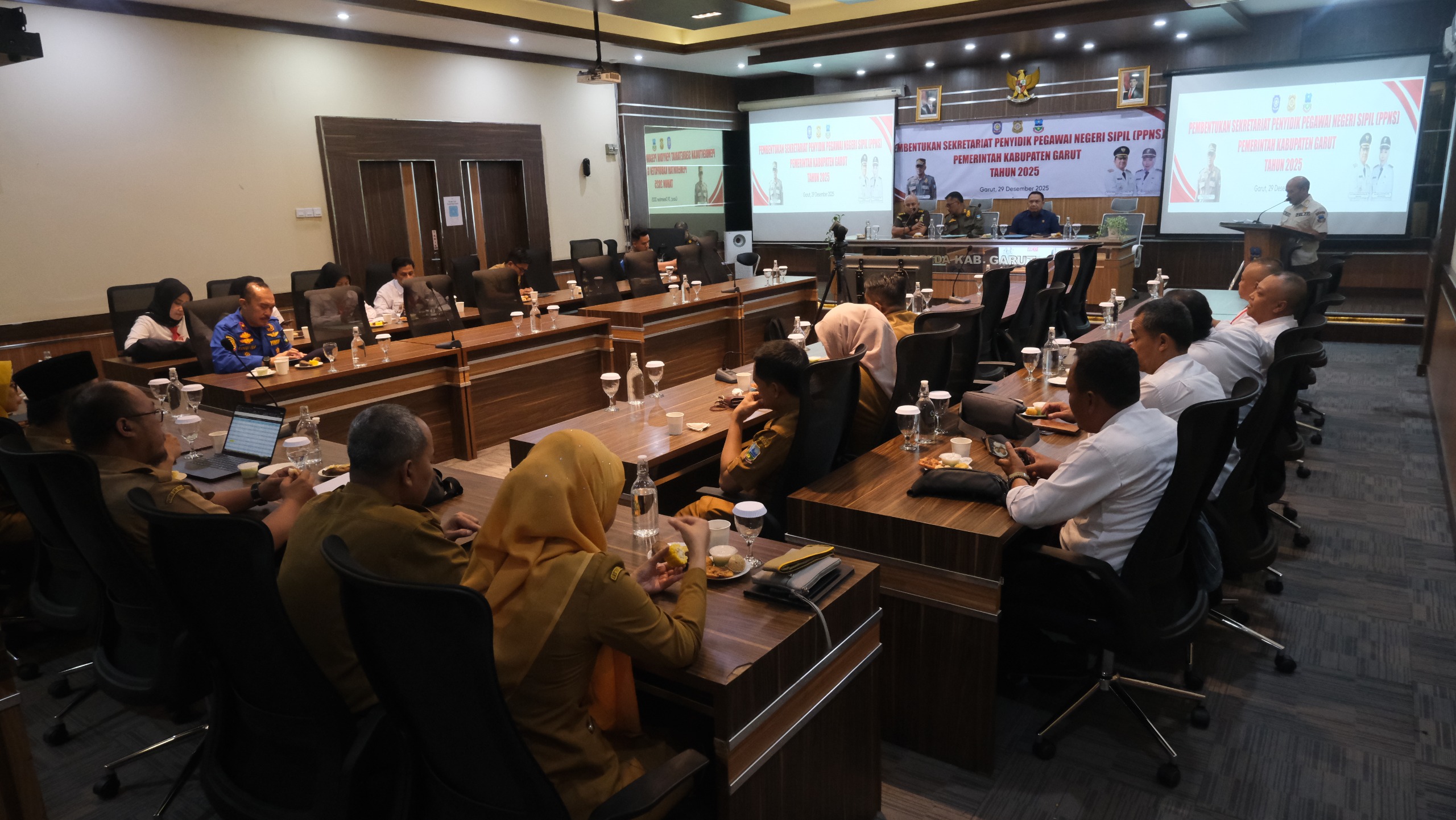Kegiatan Koordinasi Penyidik Pegawai Negeri Sipil (PPNS) dalam rangka penguatan penegakan Peraturan Daerah dan Peraturan Kepala Daerah yang berlangsung di Aula Bappeda Kabupaten Garut, Jalan Patriot, Kecamatan Tarogong Kidul, Senin (29/12/2025).