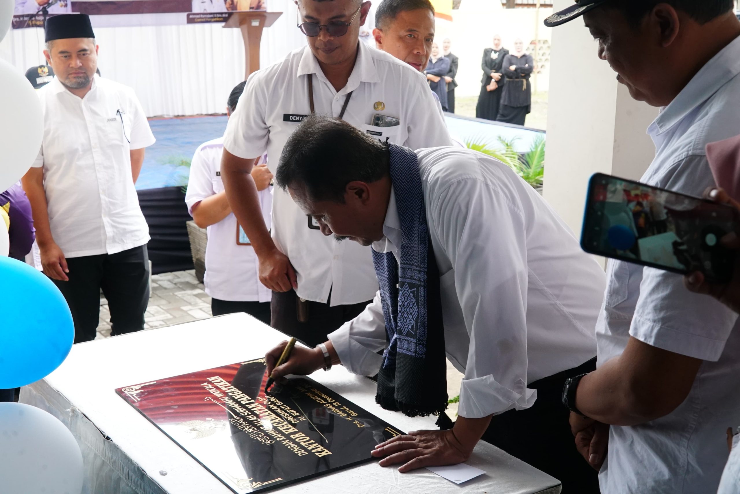 GARUT BERKABAR, Pangatikan – Penjabat (Pj) Bupati Garut, Barnas Ajdidin, secara resmi membuka gedung baru Kantor Kecamatan Pangatikan, Kabupaten Garut, pada Rabu (18/12/2024). Peresmian ini ditandai dengan pengguntingan pita di depan pintu masuk kantor yang kini hadir dengan wajah baru dan fasilitas lebih modern.