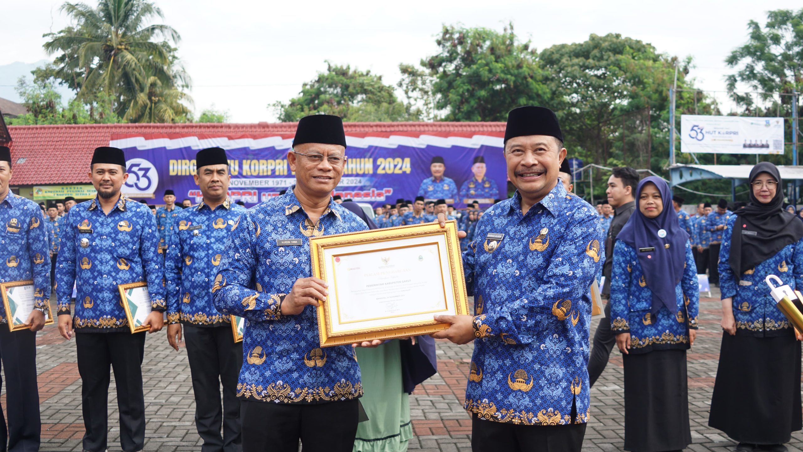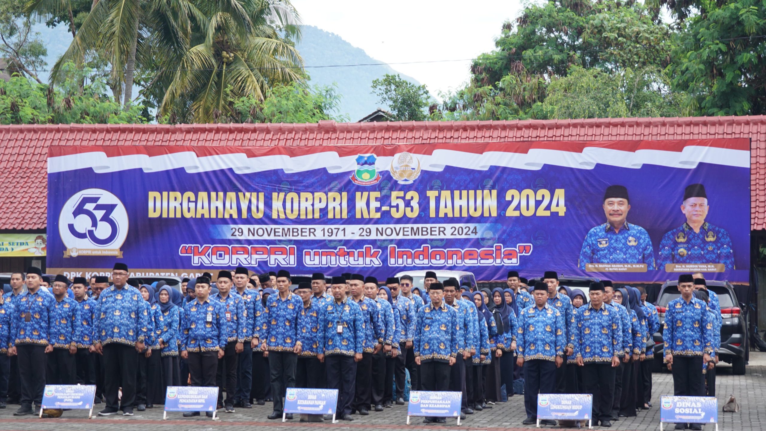 GARUT BERKABAR, Tarogong Kidul – Pemerintah Kabupaten (Pemkab) Garut melaksanakan Upacara Peringatan Hari Ulang Tahun (HUT) ke-53 Korps Pegawai Republik Indonesia (KORPRI) di Lapangan Sekretariat Daerah (Setda) Kabupaten Garut, Jalan Pembangunan, Kecamatan Tarogong Kidul, Senin (2/12/2024).