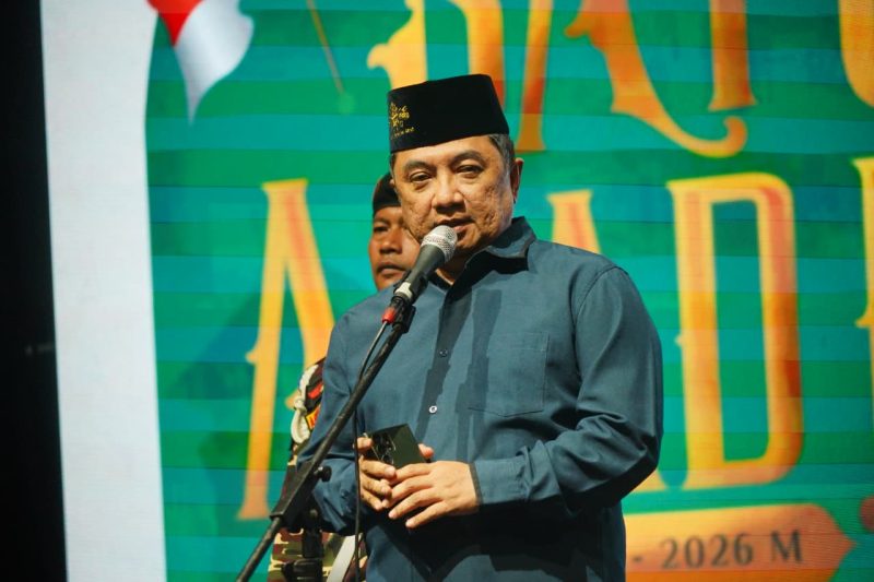 Bupati Garut, Abdusy Syakur Amin, menghadiri Peringatan Satu Abad Nahdlatul Ulama (NU) sekaligus Launching Produk Bidang Perekonomian PCNU Garut di SOR RAA Adiwijaya, Kecamatan Tarogong Kidul, Kabupaten Garut, Senin (26/1/2026).