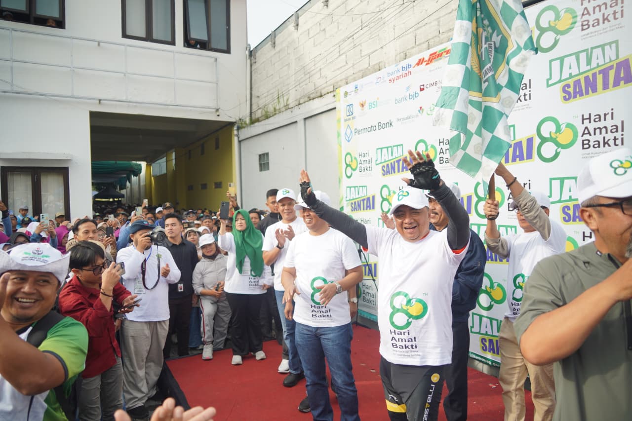 Bupati Garut Abdusy Syakur Amin menghadiri pelepasan Jalan Sehat dalam rangka Hari Amal Bhakti (HAB) ke-80 Kementerian Agama RI tingkat Kabupaten Garut di Halaman Kantor Kemenag Garut, Kecamatan Tarogong Kidul, Minggu (04/01/2026).