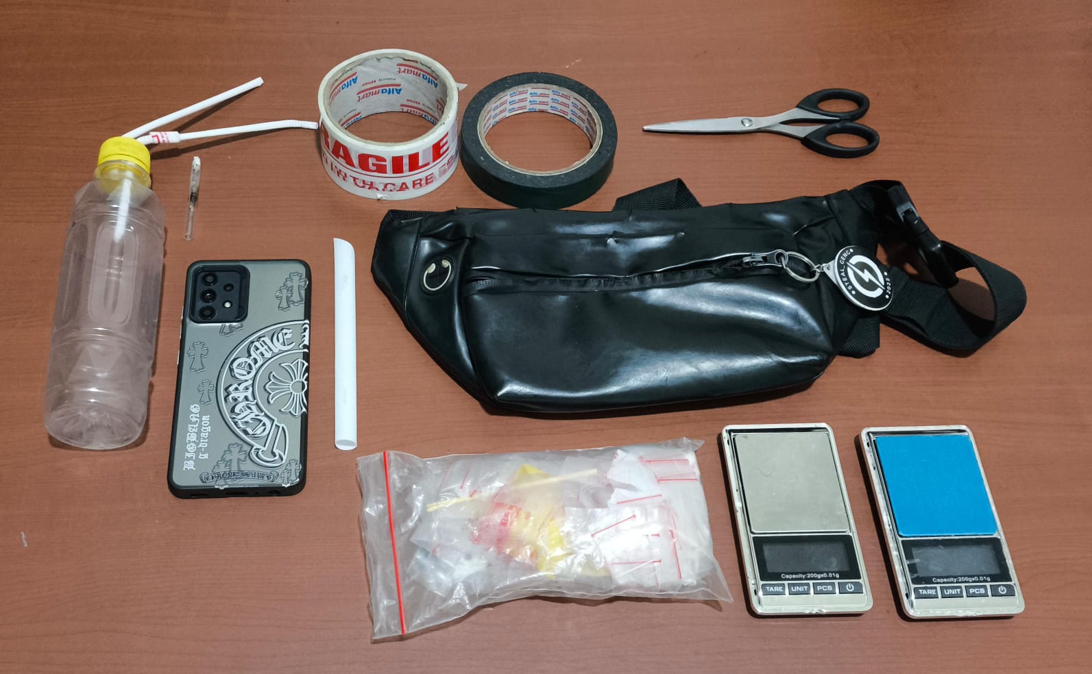 Penangkapan dilakukan pada Kamis (21/8/2025) di kawasan Kampung Leuwidaun, Desa Jaya Waras, Kecamatan Tarogong Kidul. Dari tangan pelaku, polisi menyita sabu seberat bruto 19,72 gram yang terbagi dalam 14 paket siap edar, berikut dua timbangan digital, alat hisap bong, plastik klip, lakban, double tape, serta dua unit ponsel yang diduga dipakai untuk transaksi.