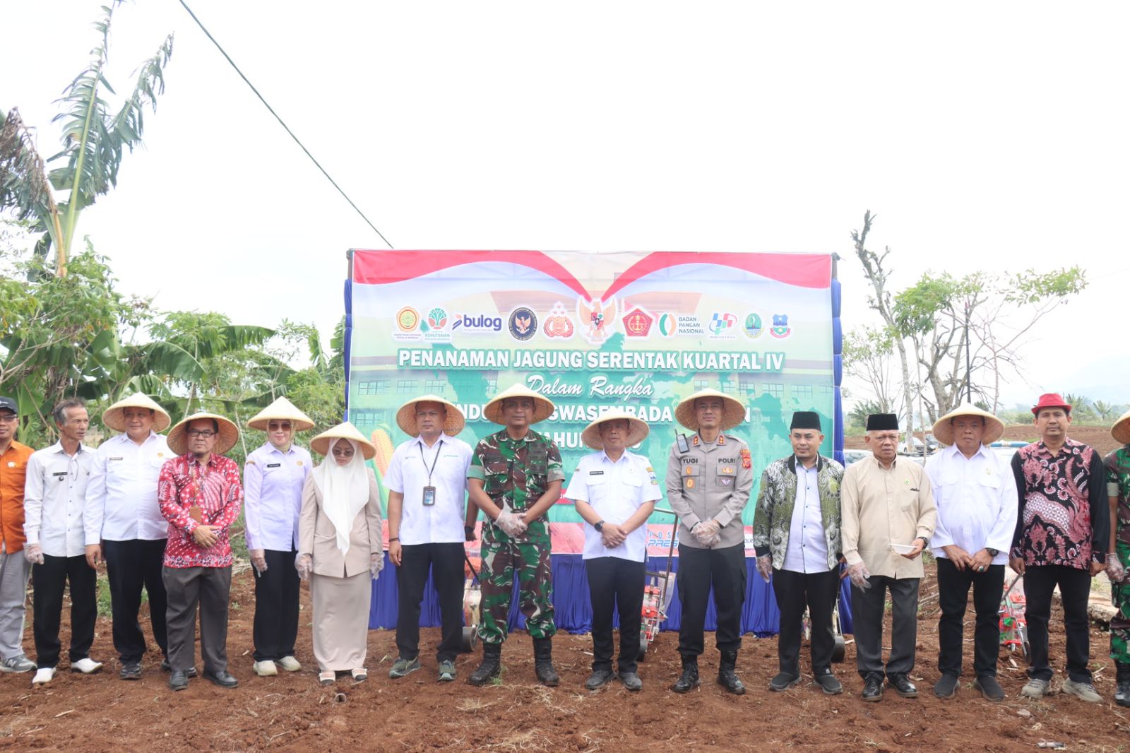 Acara dimulai dengan penyerahan pupuk dan benih jagung secara simbolis kepada kelompok tani (Gapoktan), dilanjutkan dengan aksi tanam jagung serentak sebagai bentuk nyata dukungan terhadap percepatan tanam nasional.