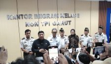 Aksi humanis anggota polisi Polres Garut tersebut membuat senang sang anak, sambil tersenyum dia meminta ayahnya untuk langsung mengambil photo.
