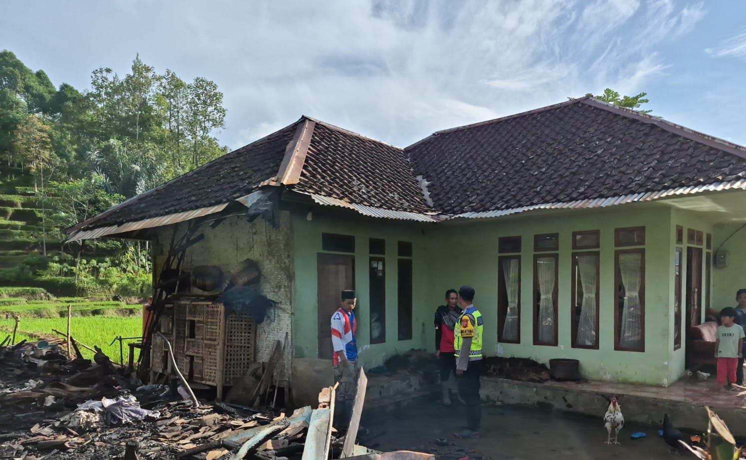 Polsek Banjarwangi cek TKP kebakaran rumah panggung di Desa Kadongdong. Kebakaran diduga akibat korsleting listrik, tidak ada korban jiwa namun kerugian ditaksir mencapai Rp30 juta.(red)