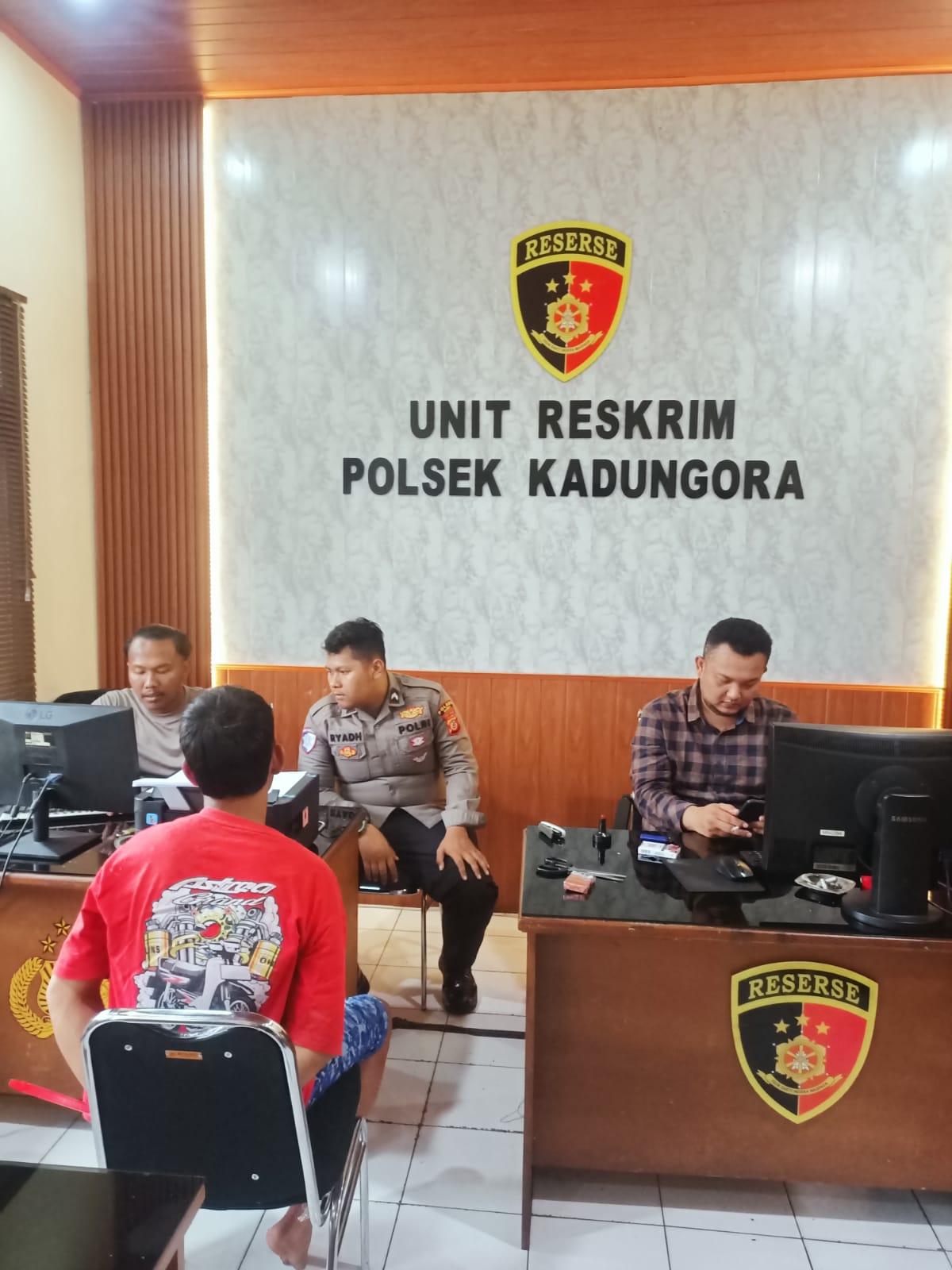 Kapolsek Kadungora, Kompol Alit Kadarusman, S.Pd., M.Si., menjelaskan bahwa pelaku berinisial F (18), warga Desa Mandalawangi, Kecamatan Nagreg, Kabupaten Bandung, diamankan sekitar pukul 10.00 WIB oleh petugas piket Polsek Kadungora.