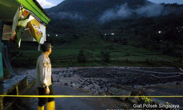 Kapolsek Singajaya, Iptu Tatang Sukirman, bersama anggota langsung turun ke lapangan melakukan pengecekan dan pengamanan di sekitar tempat kejadian. Untuk mencegah risiko bagi warga, pihak kepolisian memasang garis police line di sekitar jembatan yang rusak parah.